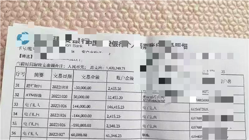 在权益诉求过程中,晋女士处理与企业人力资源部相关人员的民事纠纷时,意外发现个人工资卡存在大额非本人知情流水。经核实多名同事情况,累计流水超过2000万元。其中,晋女士本人建行账户2017-2022年流水499万元,另有韦某某550万元、赵某某440万元左右、庞某某646万元,这些流水金额与他们月工资约4000元(2025年11月晋女士工资仅3500元,含500元补助)的收入水平严重不符,且多笔大额转账本人并不知晓。