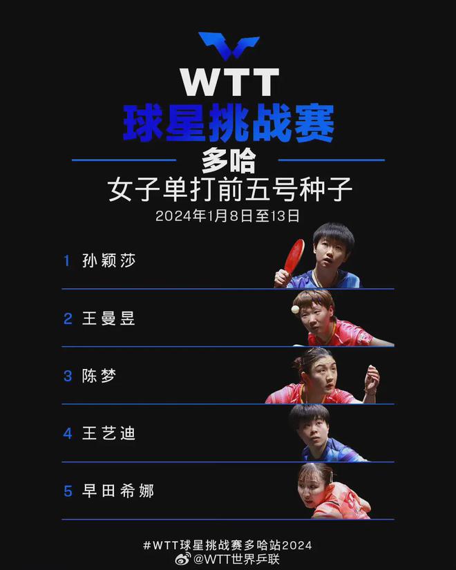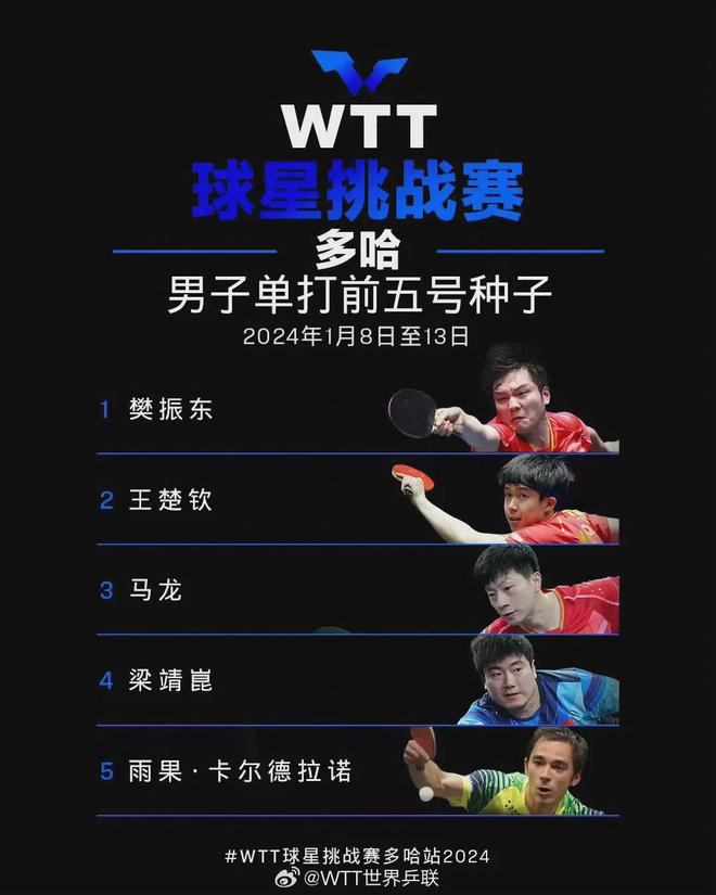 2023年即将落幕,2024将开启新的征程,近日WTT世界乒联公布了2024年开年的第一项重要赛事—多哈球星挑战赛。虽然并不属于顶级赛事,也没有中国乒协的奖励积分,但目前在男女单打排名世界前五的运动员将全部出战,力争打响2024年开年第一炮。