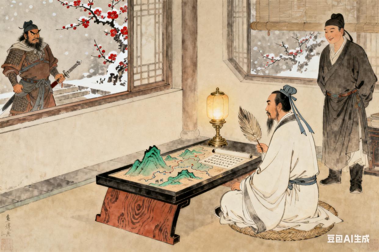 首访遭遇“亮躬耕陇亩,好为《梁父吟》”的刻意冷淡(《三国志·诸葛亮传》)