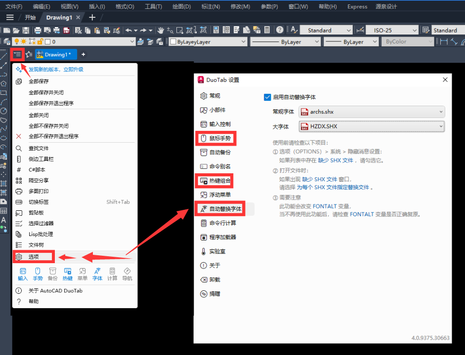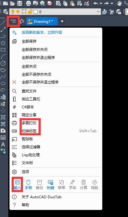 软件介绍:AutoCAD DuoTab是一款功能强大的插件,能有效提升用户使用CAD的效率,功能有:浏览器式标签页,可快速切换,可自定义标签栏的位置;鼠标手势操作;字体智能替换;多图打印及输入法自动切换等。