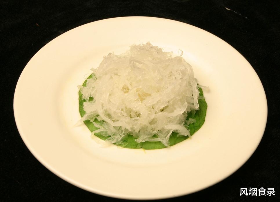 据《本草纲目拾遗》载,燕窝“大养肺阴”,配上火腿的咸香,既滋补又下饭,难怪能成国宴级菜品。