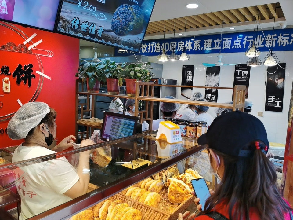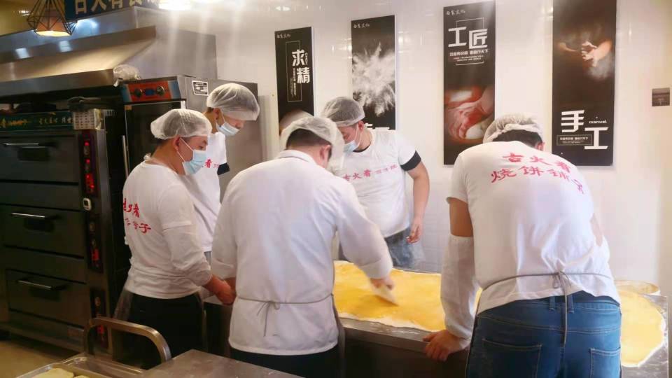 我一边吃,一边和店长聊了起来。店长告诉我,这玫瑰豆沙烧饼可是他家创始人的祖传手艺,已经传了好几代人了。为了做出最好吃的烧饼,选料上可讲究了。