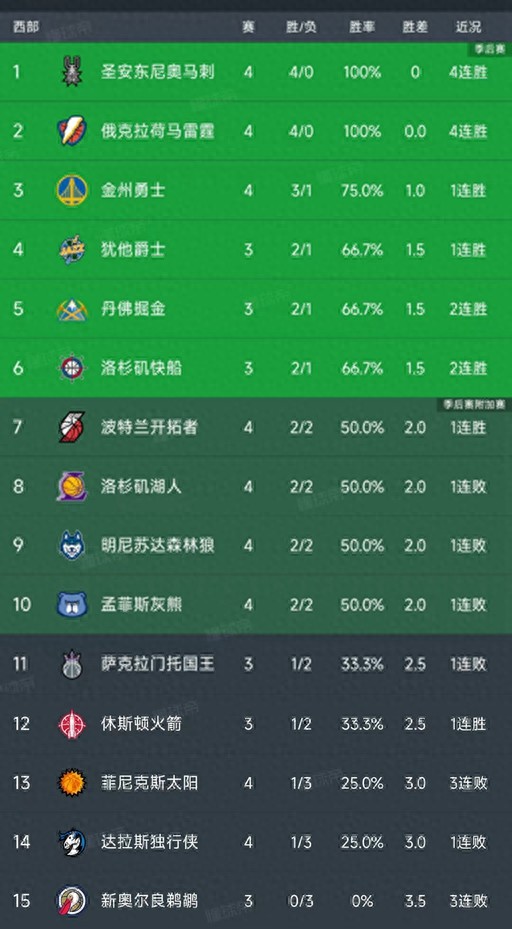 北京时间10月28日,今日的NBA常规赛结束了所有比赛,最新西部积分榜如下!