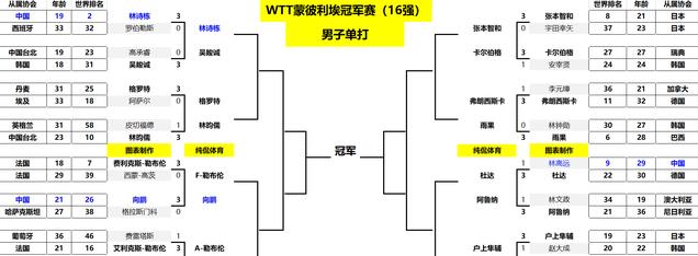 至此目前男单16强正式出炉,接下来男单1/8决赛对阵为: