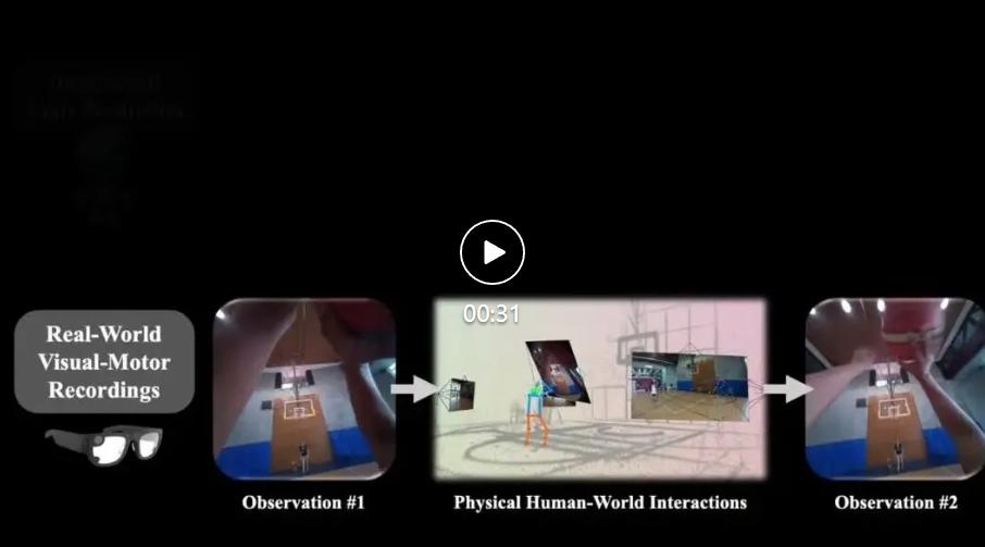 想象你是怎么打篮球的?你需要从第一人称视角去感知球的位置,同时迅速准备好起跳或拦截的动作,并不断预判不同动作对球场局势的影响。而每做出一个动作又会反过来改变环境,触发新一轮的感知 - 行动 - 预测循环。这一循环在人类的成长早期就开始了,婴儿通过在真实世界中不断地观察与交互,形成一个高度耦合的视觉 - 动作系统。这一系统比语言系统更早 “上线”—— 人类在会说话之前,就已经能通过感知和行动来理解和改变周围环境。然而,在 AI 领域,对这一系统的学习却落后于语言模型的发展。
