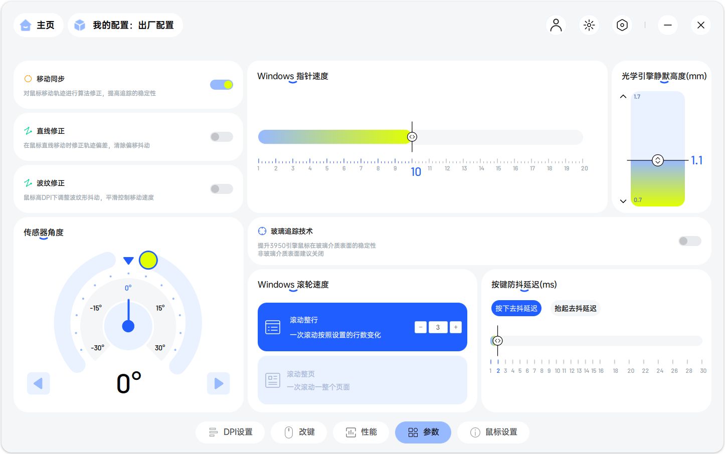 它支持应用内多种设置,比如:按键消抖延迟可调(0-32ms):玩《彩虹六号:围攻》时,我把消抖调到最低(0ms),连点C4引爆键时不会出现 “连点不识别”;日常办公时调到10ms,避免误触。