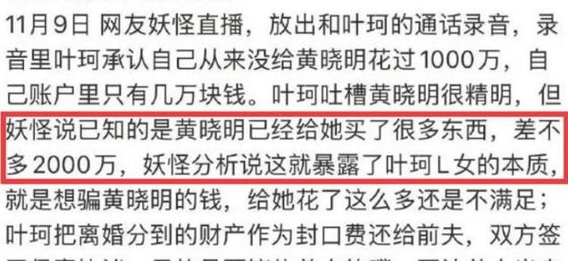 她曾在直播中夸赞黄晓明的前妻杨颖情商高,不料却引发了叶珂的强烈不满,甚至对其破口大骂。