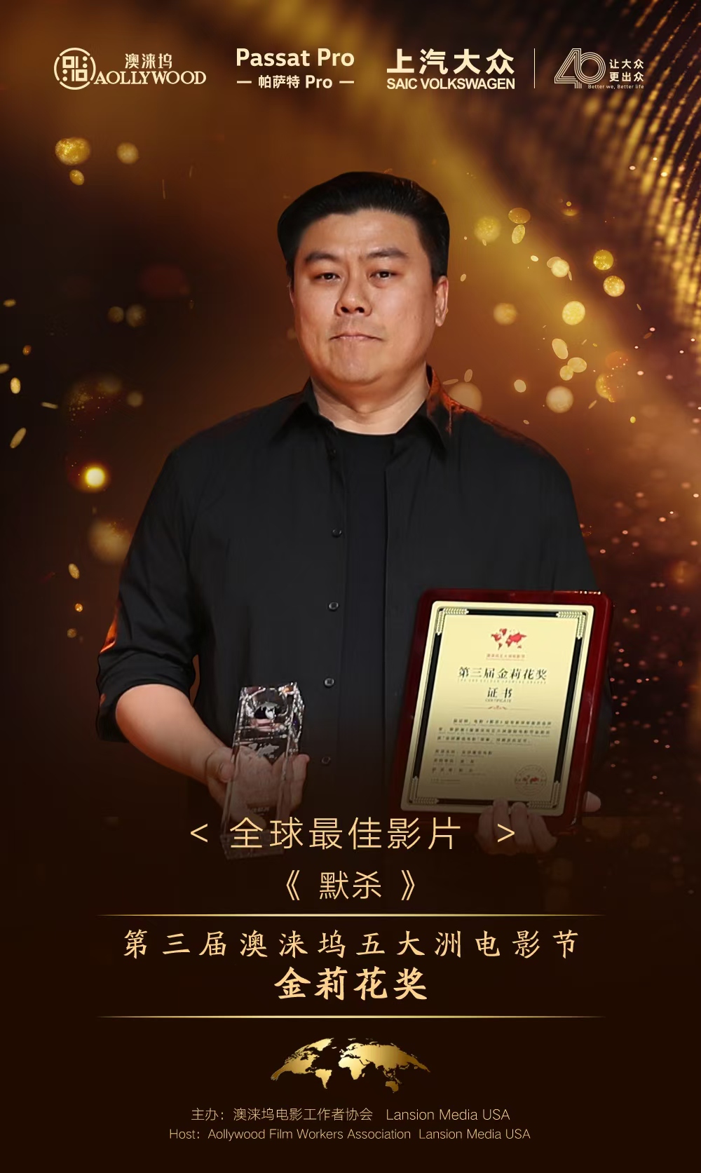 在万众瞩目的上汽大众帕萨特Pro之夜第2届世界电影产业大会第三届澳涞坞五大洲电影节上,电影《默杀》凭借其深邃的主题、精湛的制作以及震撼人心的叙事力量,一举夺得最佳影片、最佳导演及最佳剧本三项重量级大奖,成为当晚最大的赢家。这一荣誉不仅是对影片艺术成就的认可,更是对其深刻社会意义的肯定。
