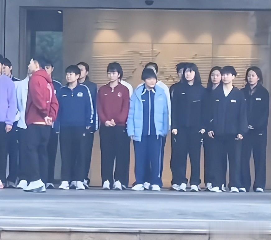 在这些眼里首先映入眼帘的就是孙颖莎,身穿着运动套装,白白嫩嫩的站在人群中一脸困意。