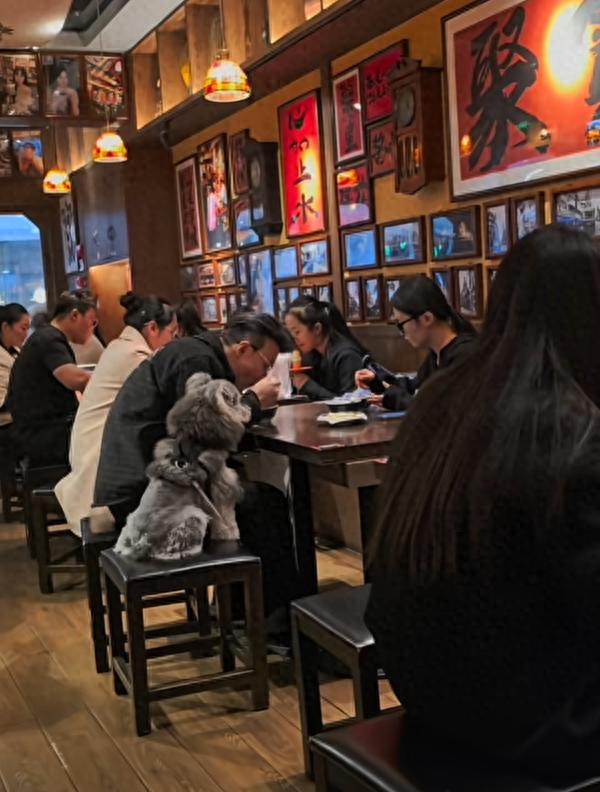 邻座的女生也看见了这一幕,一脸无奈的看着这对小情侣带狗吃饭,嘴角微撇,想要指责,想了想还是选择息事宁人。