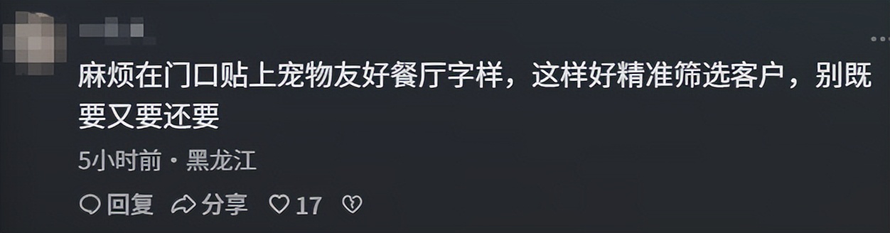还有的网友说:以后在面馆门口直接提上宠物友好餐厅吧,精确筛选客户。