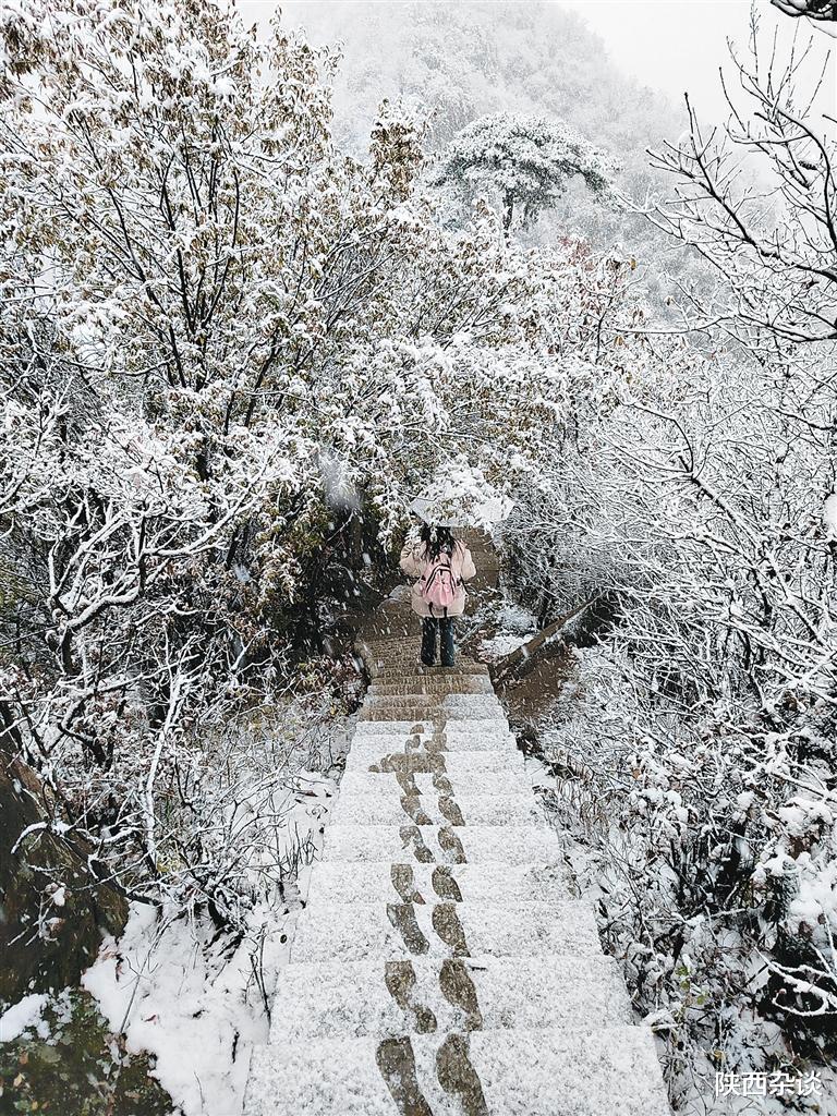 11月16日,白雪皑皑的南五台宛若一幅山水画卷。通讯员郭西安 首席记者李明 摄11月16日,游客在翠华山景区赏雪。通讯员
