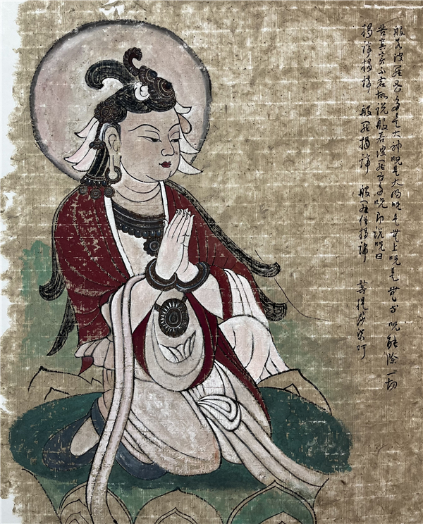 本报讯 2025年11月15日,“如是菩提” 女画家林子佛教艺术展在北京宋庄灯社吉祥启幕。据《中华艺术家》杂志社社长、本次画展策展人胡建军老师介绍:本次展览汇聚了女画家林子近年潜心创作的 50 余幅石窟壁画作品,题材以敦煌壁画为主、涵盖了龟兹库木吐喇石窟、高昌柏孜克里克石窟和云冈石窟等著名石窟艺术体系的经典题材。这次展出的作品除了纸本、仿古麻纸,泥板画的作品数量比较多。展示了画家近年来关注临摹石窟壁画,潜心学习、研究各个朝代、各个民族、各个石窟不同特色的不同风格的作品。