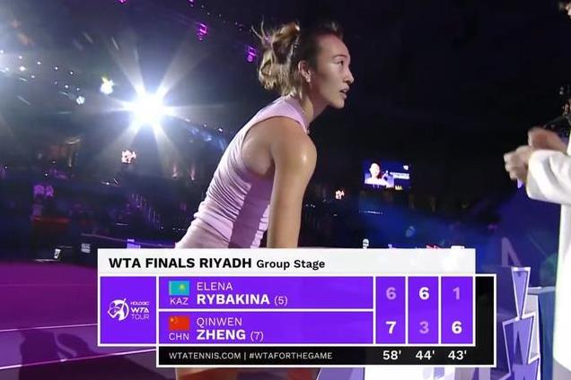 第7局,是郑钦文的发球胜赛局,郑钦文40-30拿到赛点,结果果断兑现!最终大比分2-1(7-6/3-6/6-1)战胜莱巴金娜,获得了个人职业生涯WTA年终总决赛的首场胜利,至此郑钦文小组出线已经占得了先机,恭喜郑钦文!