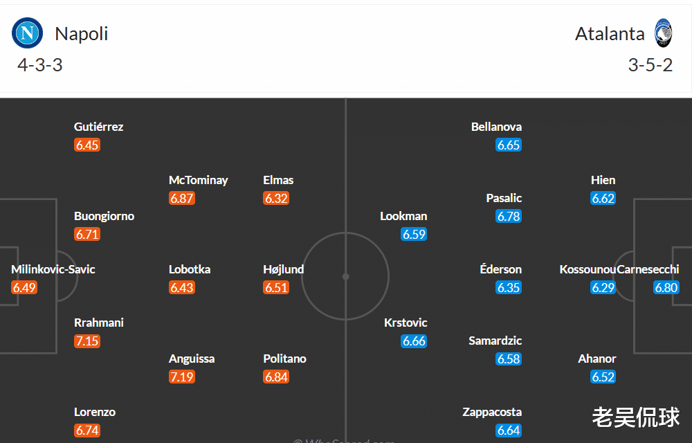 应该说,那不勒斯的主场还是很强,本季7战(包括2场欧冠)5胜2平,但最近2个主场都没进球,进攻额度锐利程度确实不够,亚特兰大尽管已滑落到第13位,但底子还在,找回习惯的足球风格还是有竞争力的。最近两个赛季,这两队交手很奇怪,都是在客场赢球主场输球。今晚会延续吗?老吴倾向支持新帅首秀的亚特兰大做客不败。