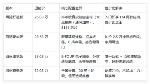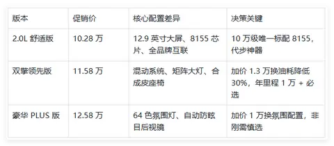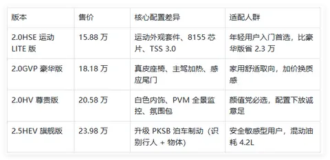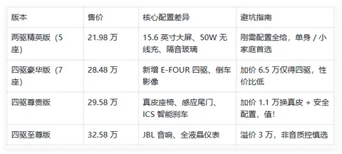 避坑指南:中高配优先选 “臻享 / 尊贵” 后缀版本,避开 “豪华版” 配置陷阱;