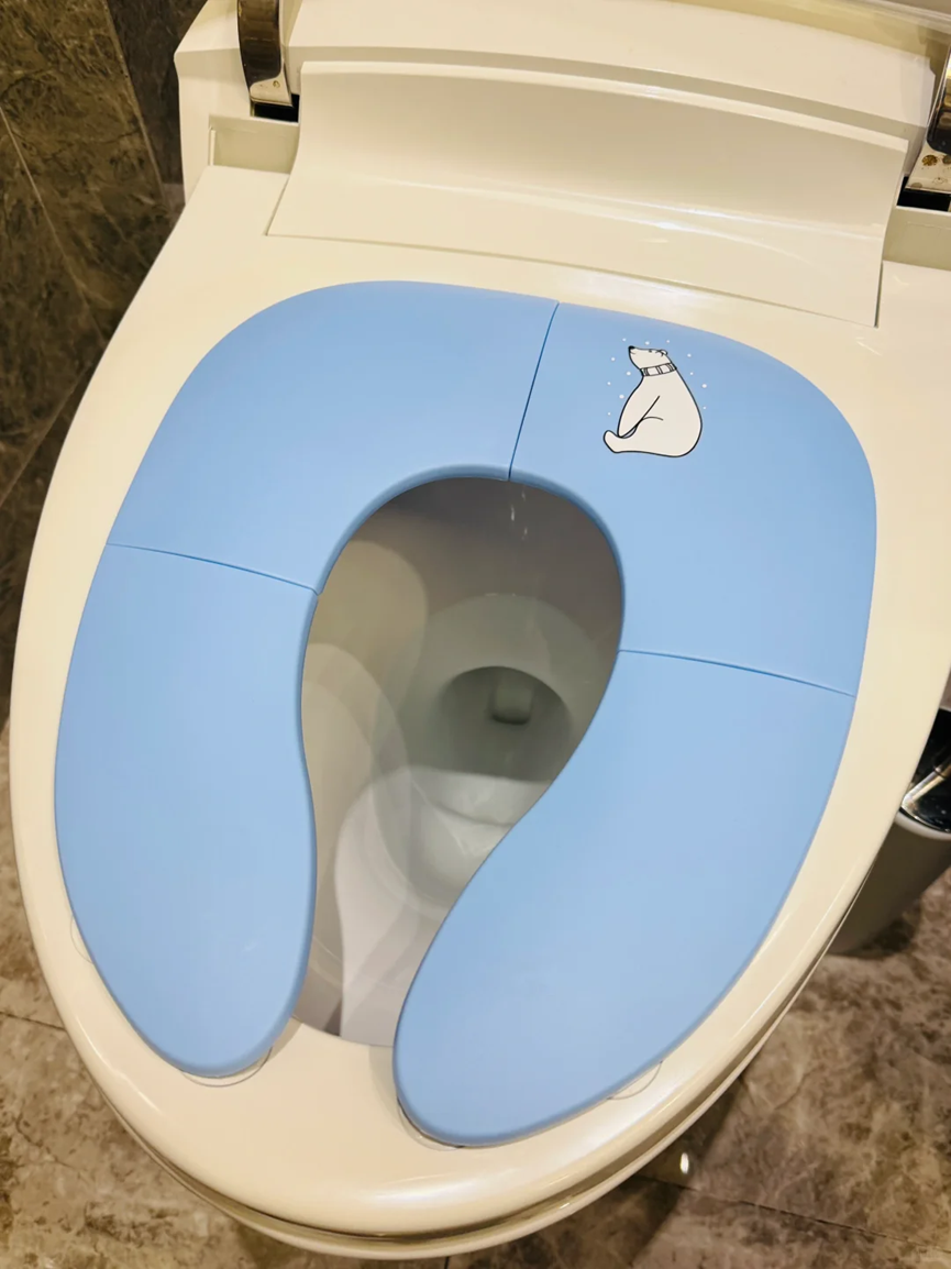 不管是在家还是在让孩子外出入住酒店的时候,直接将小坐垫打开放在马桶上就可以了,方便孩子使用,而且更加的干净。