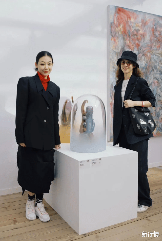 而后,艺术家赵瑾雅晒出了几张巴黎亚洲艺术博览会的现场照片,其中也有章泽天的身影。