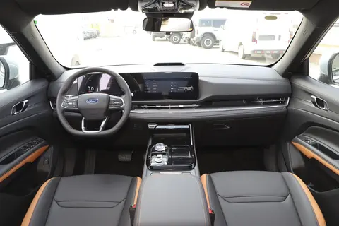 先简单提下外观内饰,福特家族化设计挺有辨识度,贯穿式黑曜石前格栅配 L 形大灯,带点硬派气息;车身线条利落立体,车尾宽厚饱满,尾灯和前脸呼应,整体大气不花哨,家用挺合适。内饰就是合资车常见的实用风格,没有太多花哨设计,重点还是看配置。