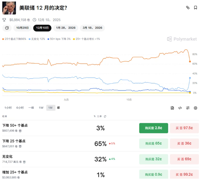 美联储在货币政策委员会FOMC会后公布,将联邦基金利率的目标区间从4.00%至4.25%下调至3.75%至4.00%,降幅25个基点。美联储FOMC声明宣布将于12月1日结束资产负债表缩减,当前为每月减持50亿美元美债和350亿美元MBS。在那之后,抵押贷款支持证券的赎回本金将被再投资于短期国债。这个幅度符合市场预期,但是鲍威尔之后开新闻发布会,他表示,美联储在12月再次降息并非板上钉钉的事,美股、比特币、黄金、美债盘中短线跳水。本来是正常预期,不过鲍师傅放了狠话之后,各种跳水了,幅度都不大……