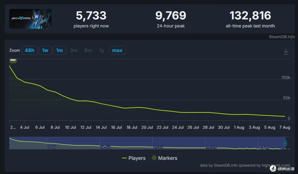 但好景不长,快速升温后《解限机》就迎来了快速遇冷,上线仅1个月,该游戏的同时在线人数就已跌破1万,玩家流失严重。