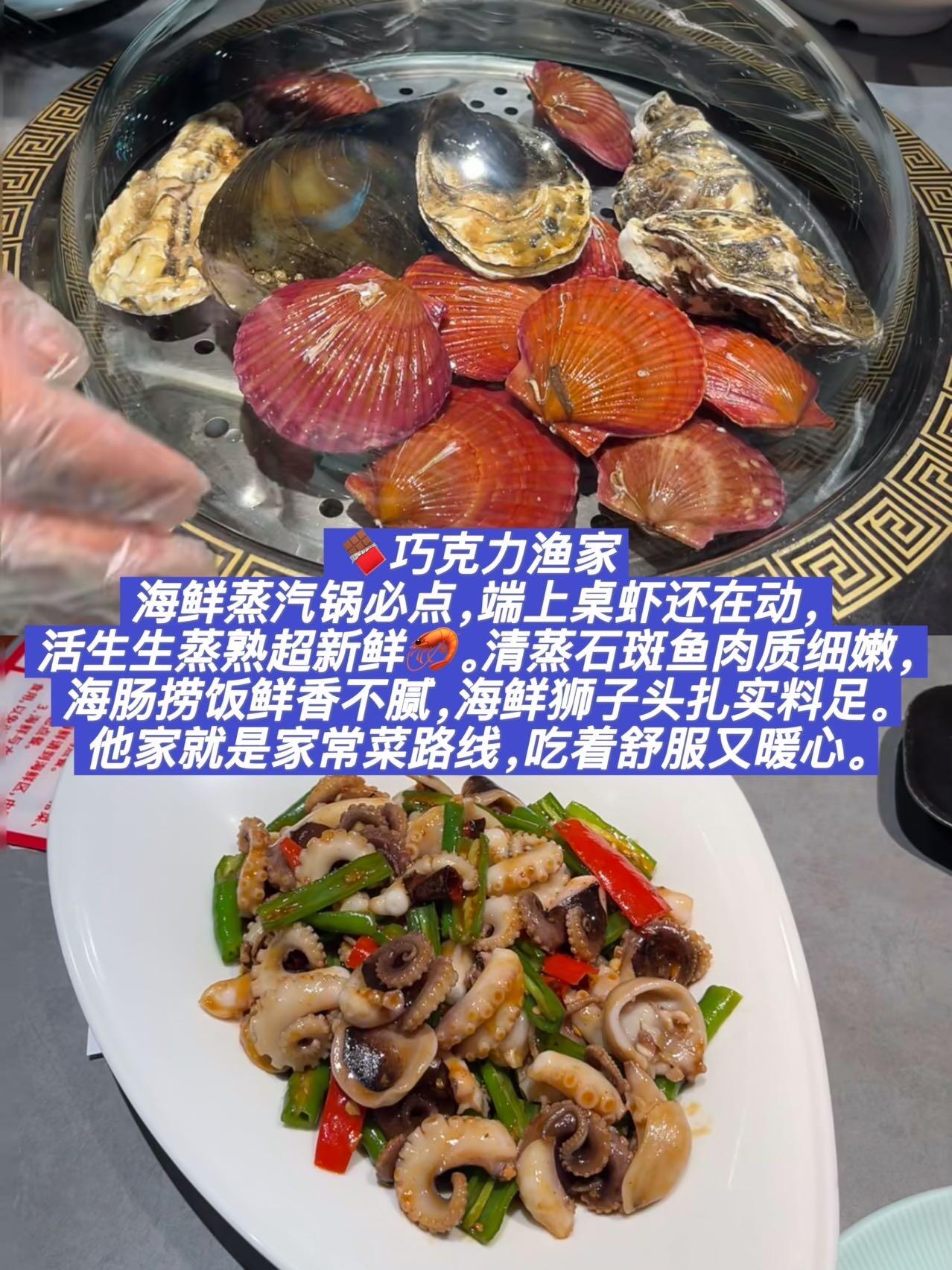 海鲜蒸汽锅必点,端上桌虾还在动,活生生蒸熟超新鲜🦐。清蒸石斑鱼肉质细嫩,海肠捞饭鲜香不腻,海鲜狮子头扎实料足。他家就是家常菜路线,吃着舒服又暖心。