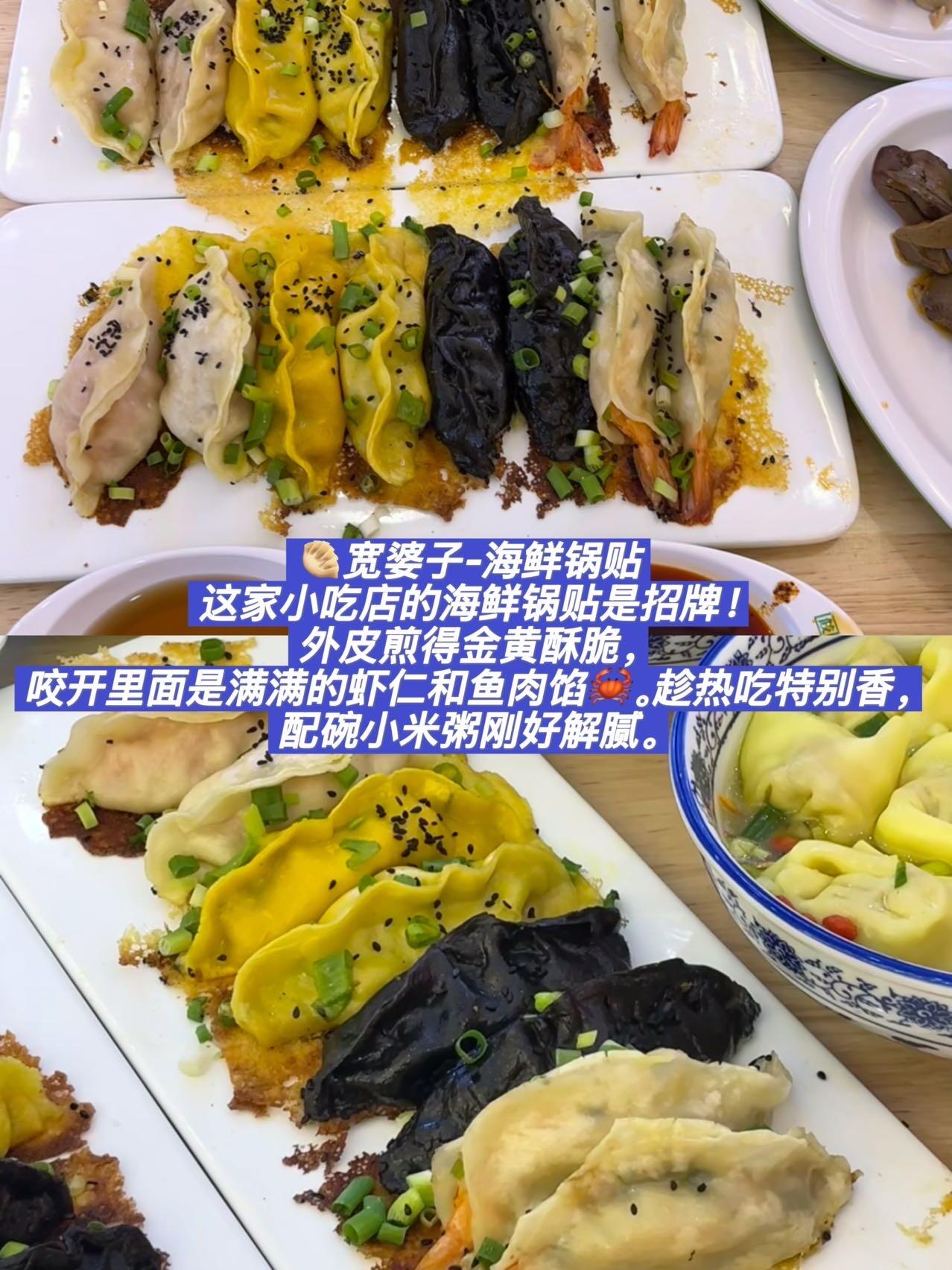 这家小吃店的海鲜锅贴是招牌!外皮煎得金黄酥脆,咬开里面是满满的虾仁和鱼肉馅🦀。趁热吃特别香,配碗小米粥刚好解腻。
