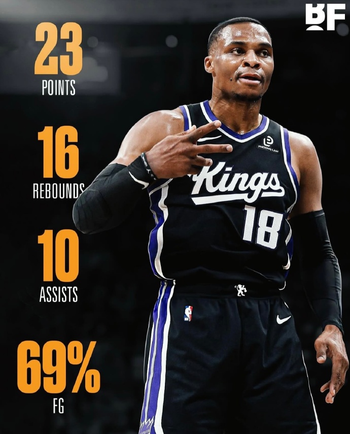 值得一提的是,这是威少生涯第204次三双,继续刷新历史纪录,威少也成为NBA历史上第一位在七支球队都砍下过三双的球员。威少生涯篮板数来到8734个,超越基德,成为NBA历史后卫篮板王。