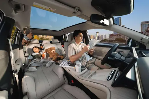 后排座椅靠背角度可实现同级领先的137度放倒,半躺出行更惬意,配合承重10kg的后排小桌板,以及2.26平方米全景天幕加电动遮阳帘等多项舒适配置,为全家出行带来更多精彩。