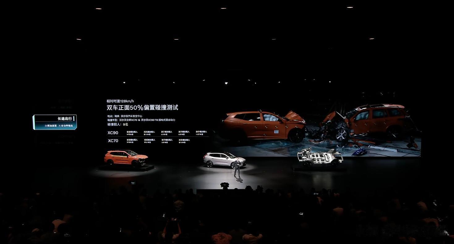 作为参考,在C-NCAP/E-NCAP这些碰撞规程中,与沃尔沃本次对撞接近的标准试验,则是正面50%重叠移动渐进变形壁障碰撞,但该碰撞的车速仅为50km/h,同时避障车的重量也仅为1400kg,要知道全新XC70的整备质量就达到了2416kg,而作为对撞对象的沃尔沃XC90,整备质量更是达到了2629kg,并且两车是对向碰撞,相对速度达到了128km/h,光是全新XC90的碰撞动能就是避障车的3倍,可见全新XC70所要遭受的碰撞能量之高,由此也能更好检验一台车的安全性。