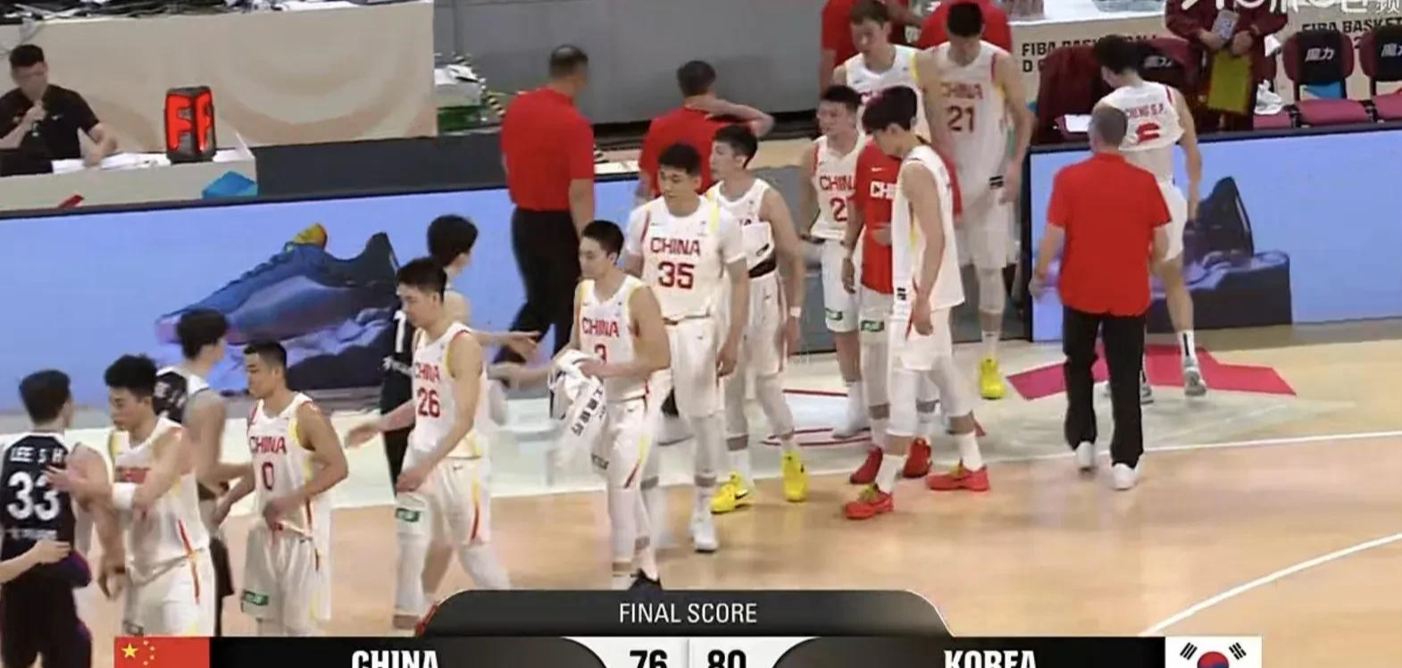 全场比赛结束,中国男篮以76比80负于韩国男篮。中国队得分情况:张镇麟20分8板2抢断,廖三宁17分5板6助攻2抢断,周琦11分12板,胡金秋10分3板1盖帽,高诗岩6分5板2助攻2抢断,陈帅鹏6分1板3助攻1抢断,朱俊龙2分2板1助攻2抢断,胡明轩2分1板4助攻,曾凡博2分2板1盖帽。王岚嵚出场6分18秒拿到3板1助攻。李祥波出场1分13秒,拿到1抢断。