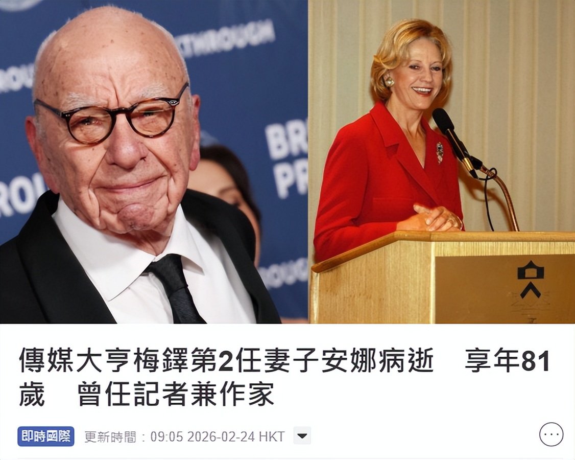 千亿传媒大亨默多克的第二任前妻安娜在2月17日去世,享年81岁。
