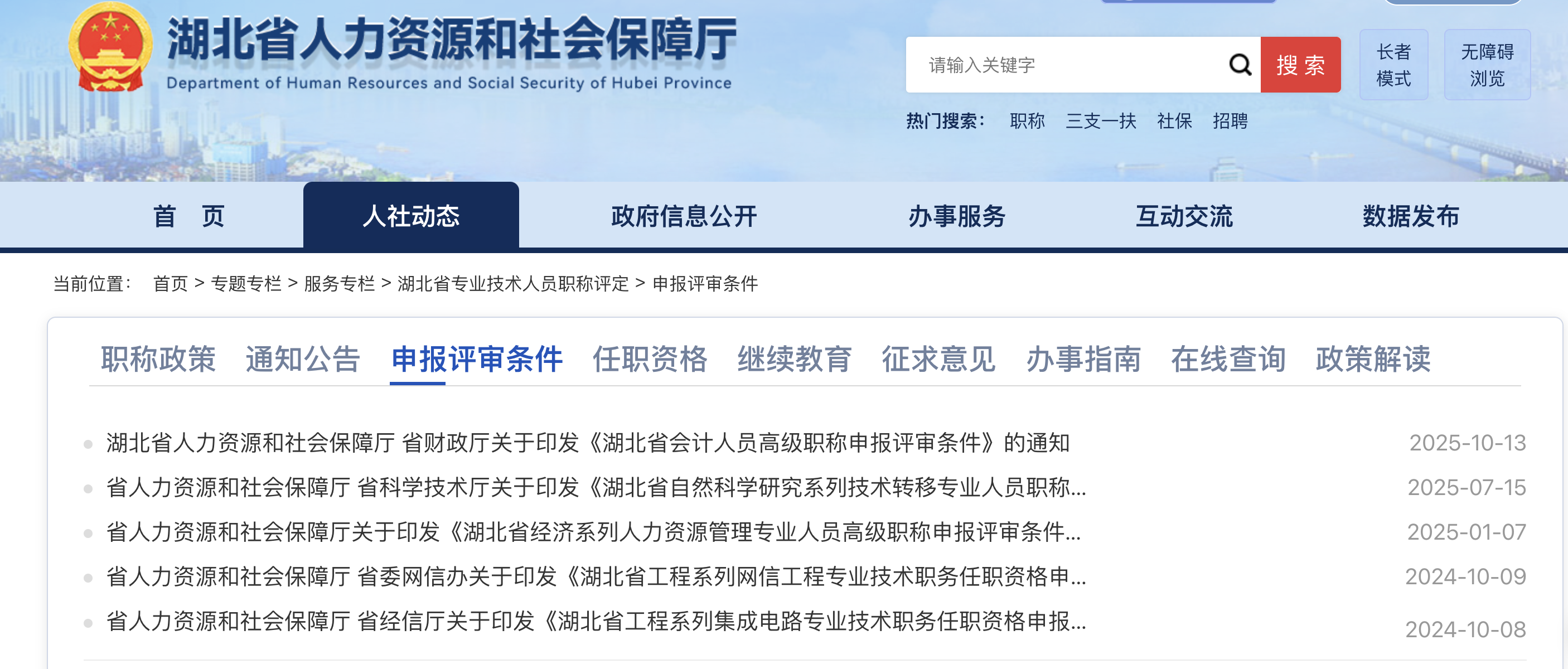 小白-申报中级职称/副高看过来1.湖北省人力资源和社会劳动保障厅。2.人社动态-专题栏目。3.服务专栏“湖北省专业技术人员职称评定”。4.申报评审条件-更多。5.职称政策/通知公告/申报评审条件。