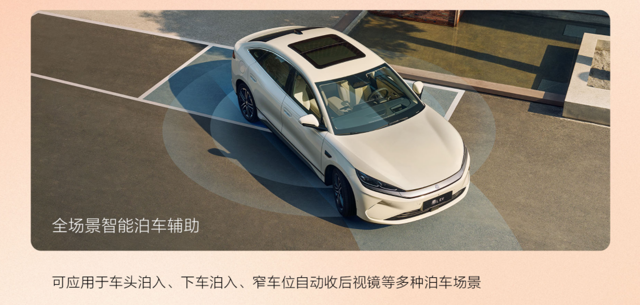 秦L EV在智能泊车领域不断突破创新,新增车头泊入+车尾泊出、偏置泊车功能,窄车位自动收后视镜功能更是贴心至极,让停车难题迎刃而解,即便是新手司机也能轻松应对各种复杂车位。