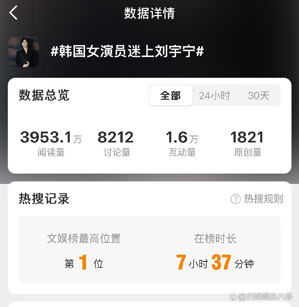 这场跨国"迷恋"很快达到高潮,随着林秀香的"安利",中韩网友开启跨平台互动。中国网友用韩语翻译刘宇宁的经典台词,韩国网友则用中文创作"追星小作文",场面十分热闹。林秀香还模仿剧中台词玩梗,用中文留言"魏侯宽厚,妾心向往之"与粉丝互动,进一步点燃了两国网友的热情。刘宇宁凭借190cm的身高优势、冷峻气质及细腻演技,将魏劭塑造为"枭雄赛道一骑绝尘"的角色,剧中"骑马掐脖子"和"10余场吻戏"等名场面,以及角色从"为恨而生"到"因爱而存"的成长弧光,成为打动林秀香的核心。