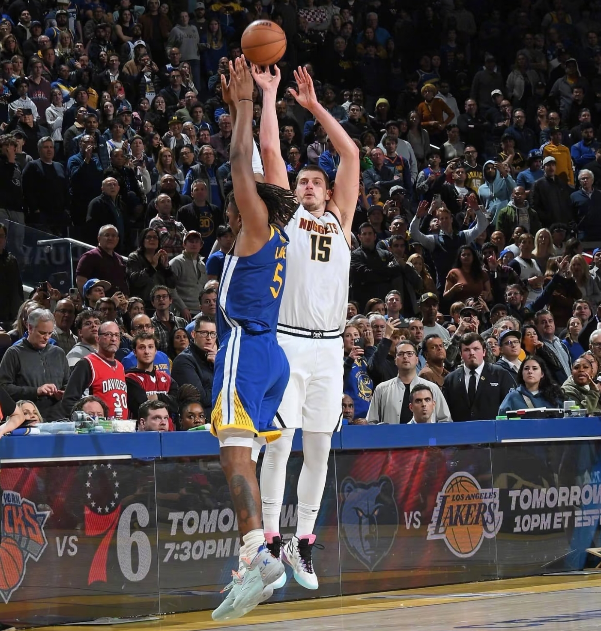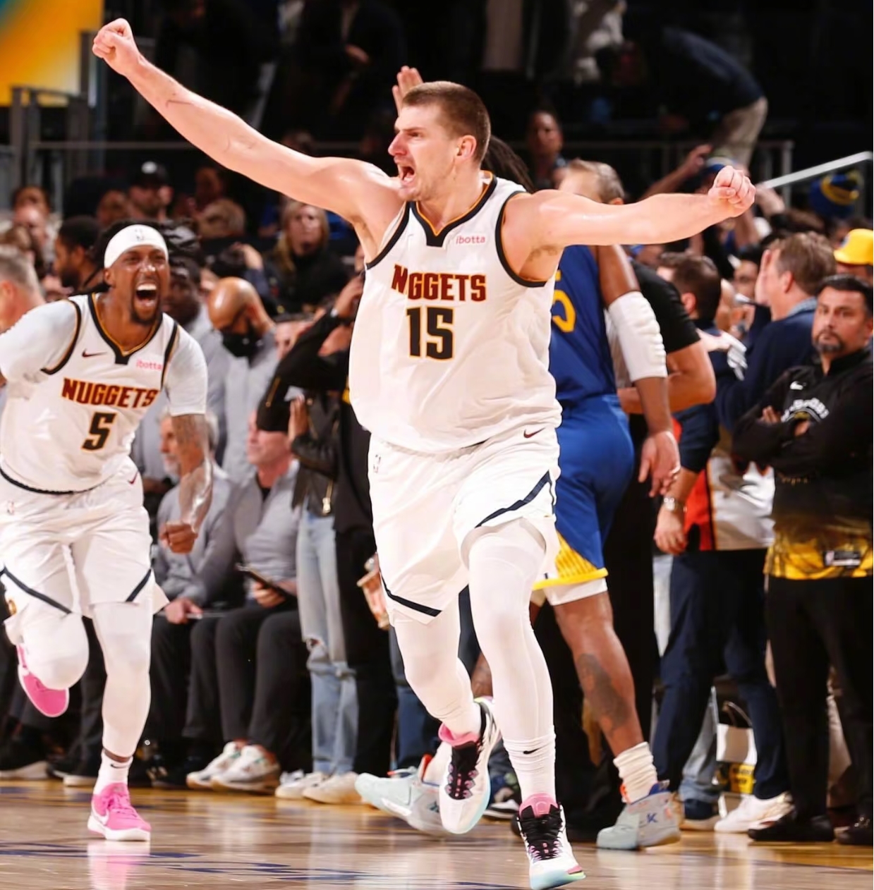约基奇不在场上时,爵士都追不回分,因为掘金替补约翰逊和小哈达威能续上火力。