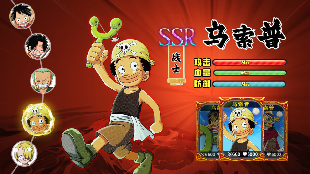 AOE 清场阵容:乌索普、罗、贝基、艾斯、萨博(路西形态)以艾斯和萨博(路西形态)为核心输出,两人的大范围技能可快速清理敌方小怪,乌索普的控制和罗的治疗能保障队伍续航,适合应对小怪密集的关卡。