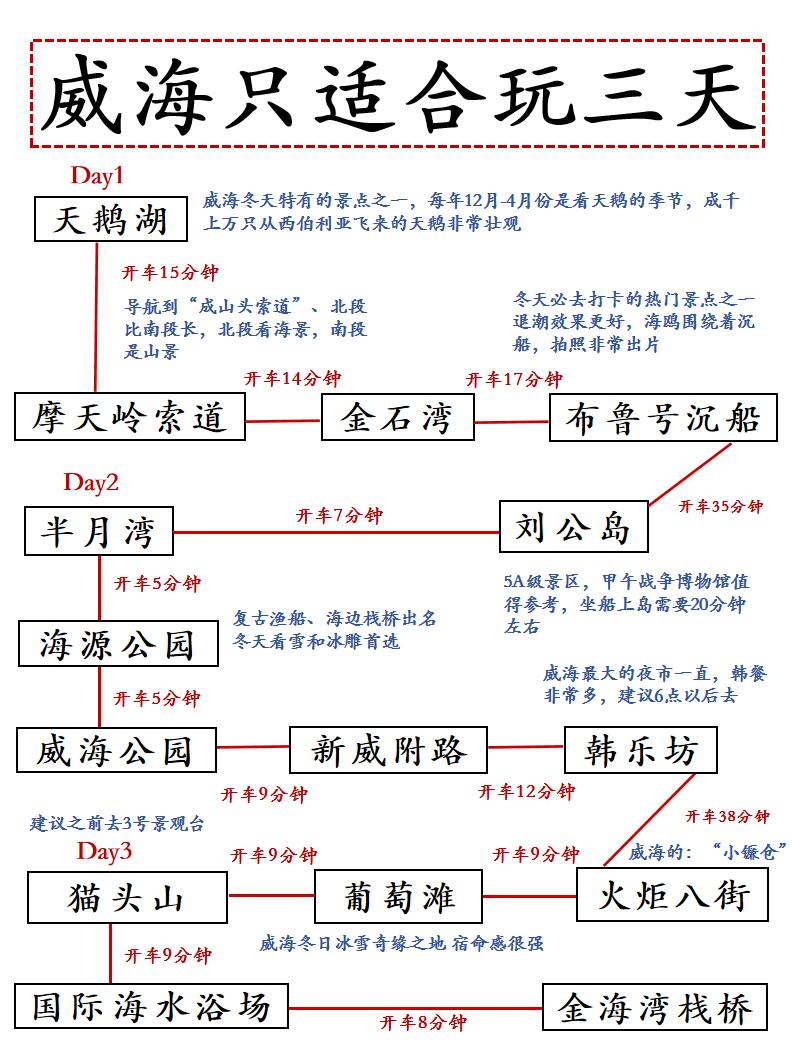想去威海看雪的姐妹抓紧看过来了,刚整理完威海3天威海雪景行程,准备冬天去威海的姐妹们直接抄作业,省钱又不绕路,太适合小白去了🥹