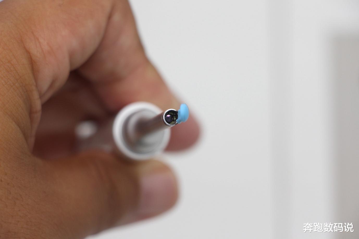 挖耳勺主机造型小巧,尺寸与钢笔相近,通体白色搭配圆润线条,机身表面的磨砂处理不仅防滑,还不易沾染指纹。其重量轻盈,握在手中毫无坠感,即使长时间单手操作,也不会感到疲惫。镜头模组的保护盖采用磁吸式设计,轻轻一拨即可取下,使用完毕后,靠近主机便自动吸附,比起传统卡扣式,方便了许多。