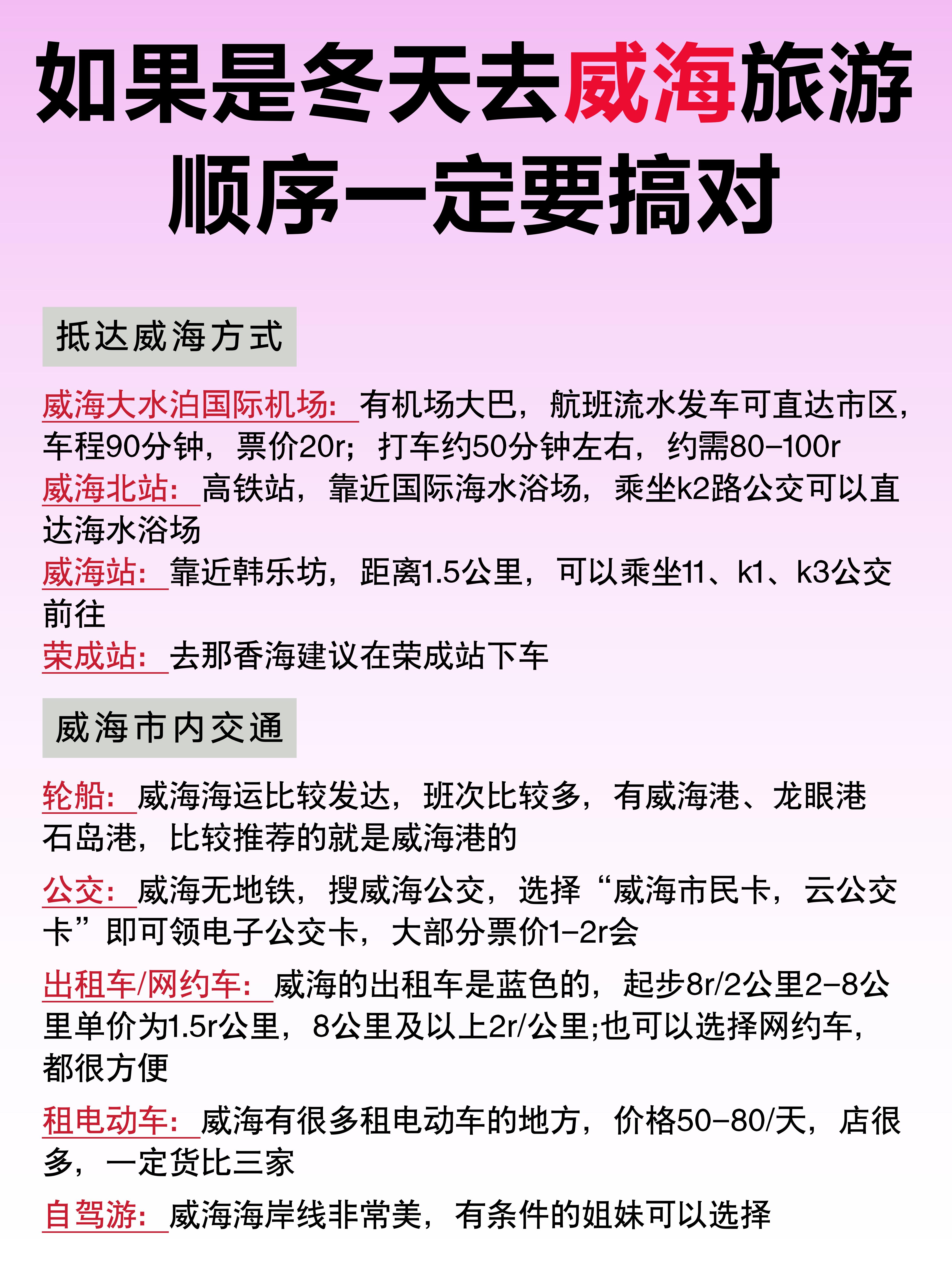 🛩️飞机大水泊国际机场,大巴一条线20r🚗电动车/自驾:威海景点相对分散,适合环海专用小电驴或者自驾!