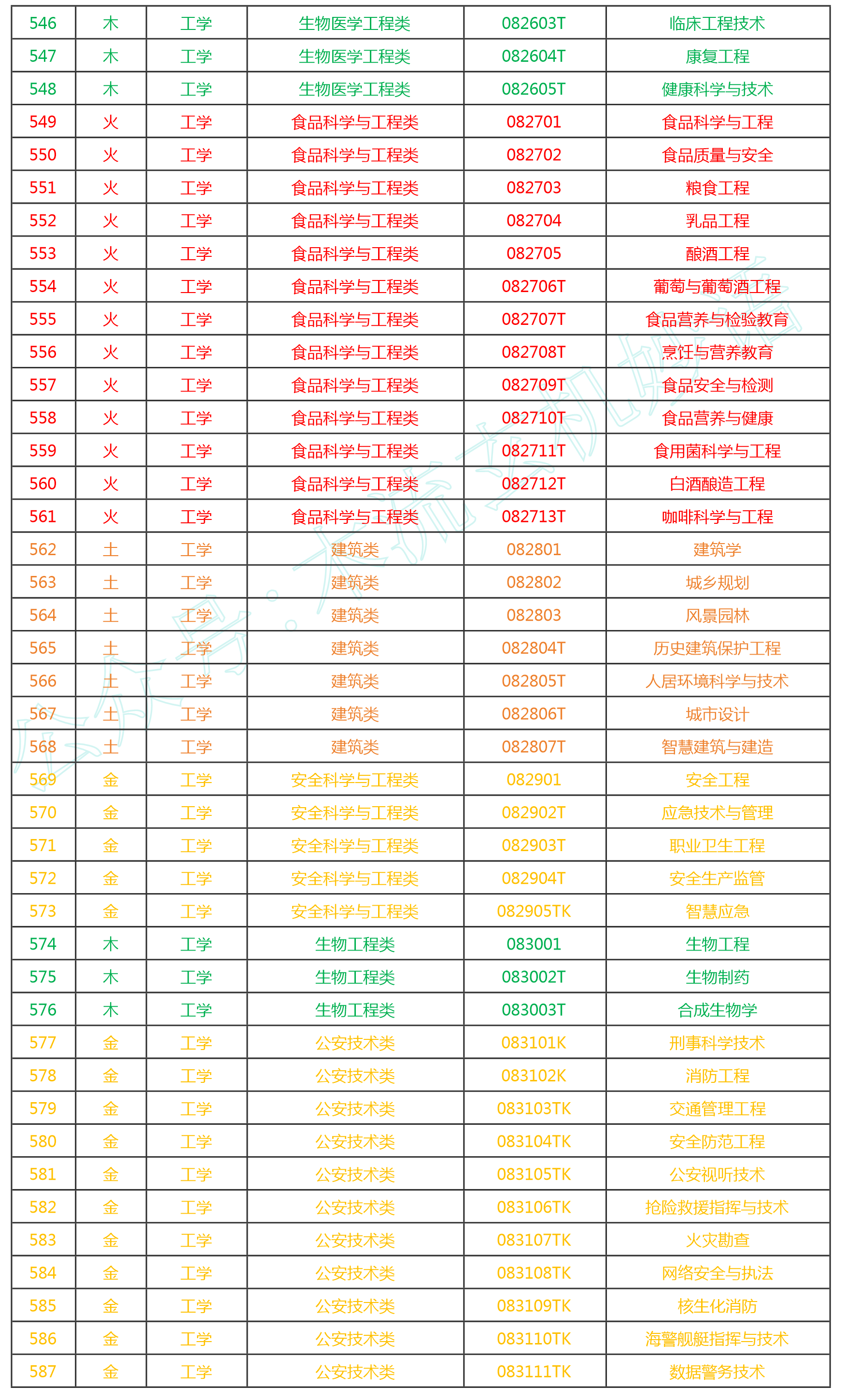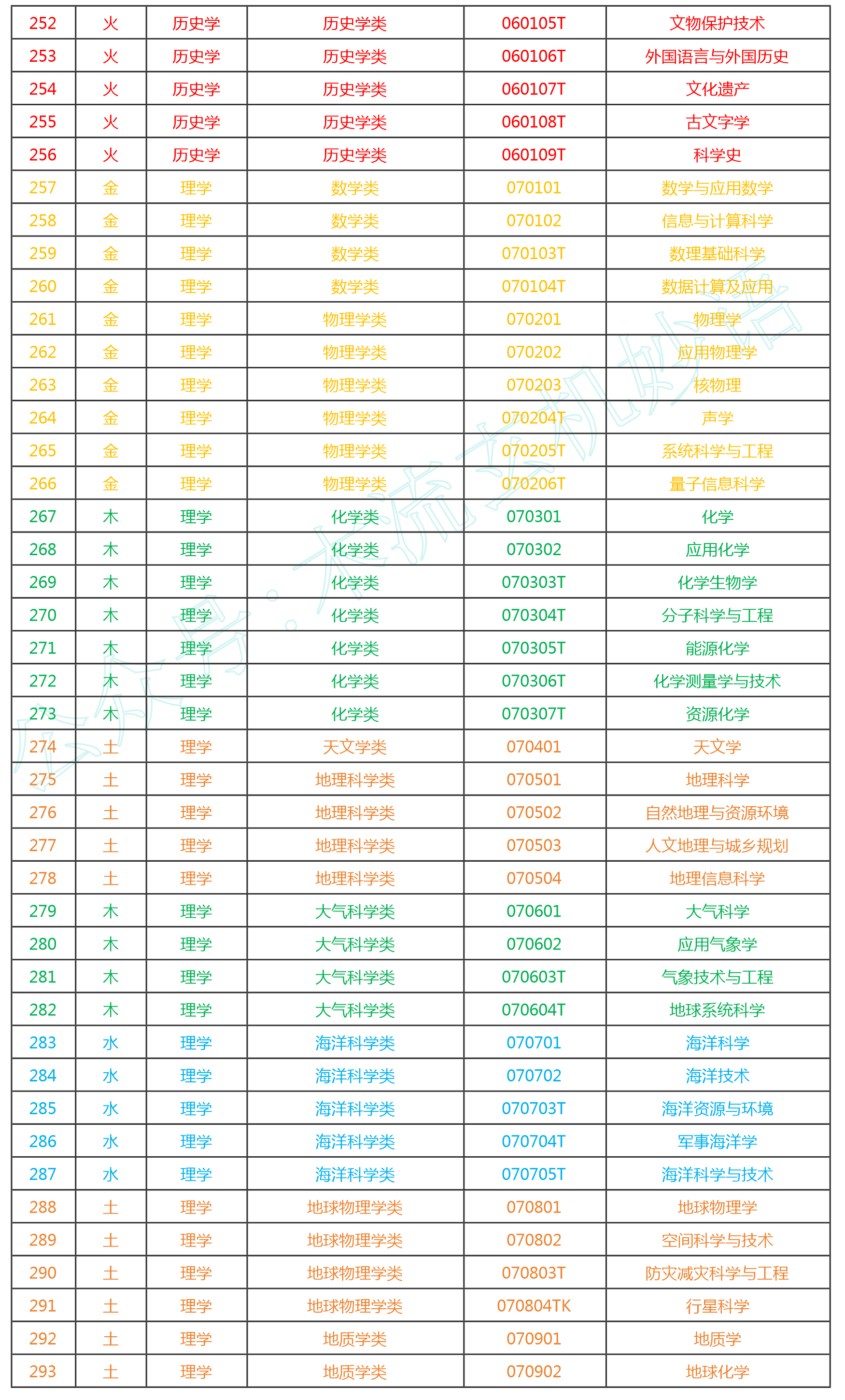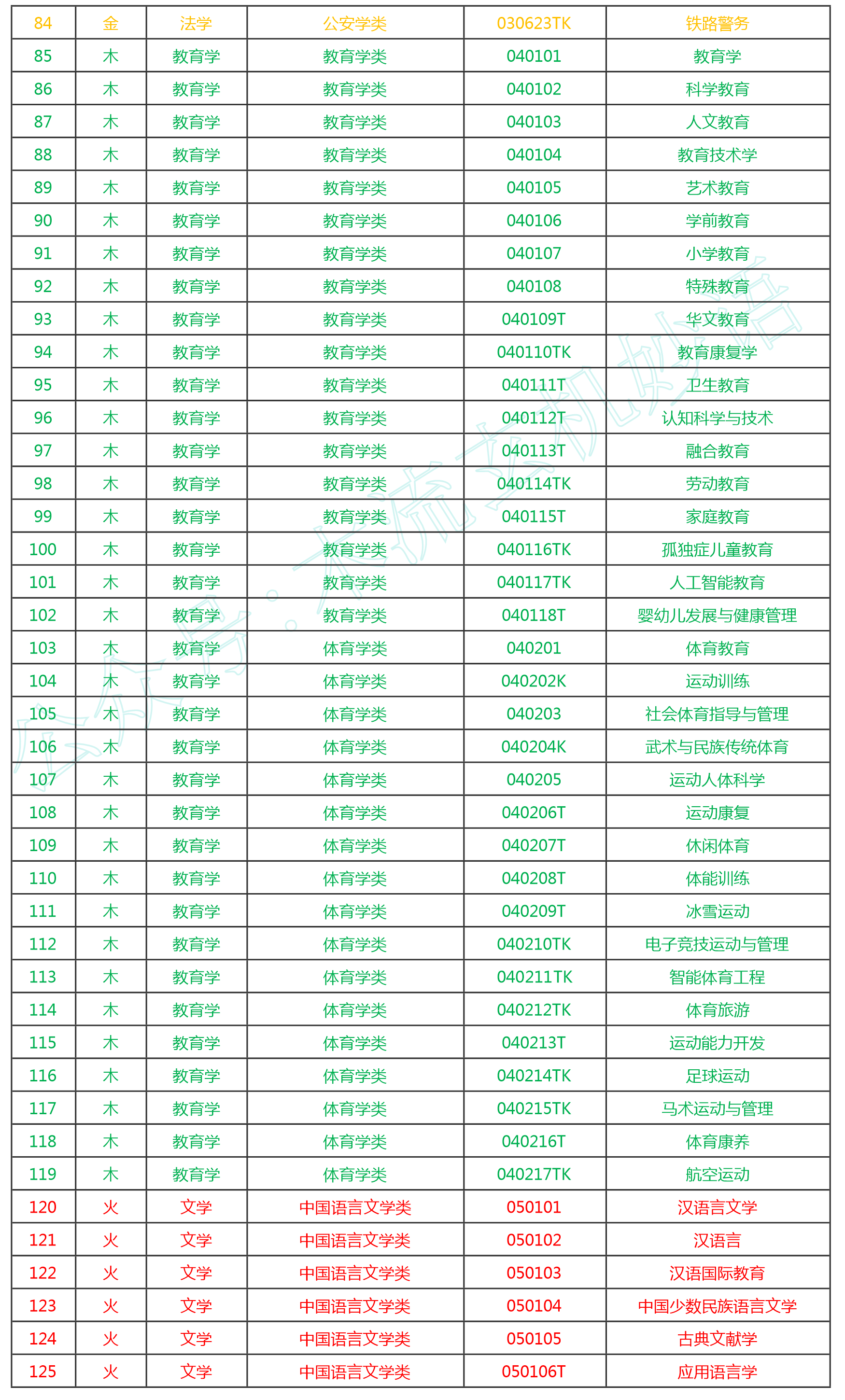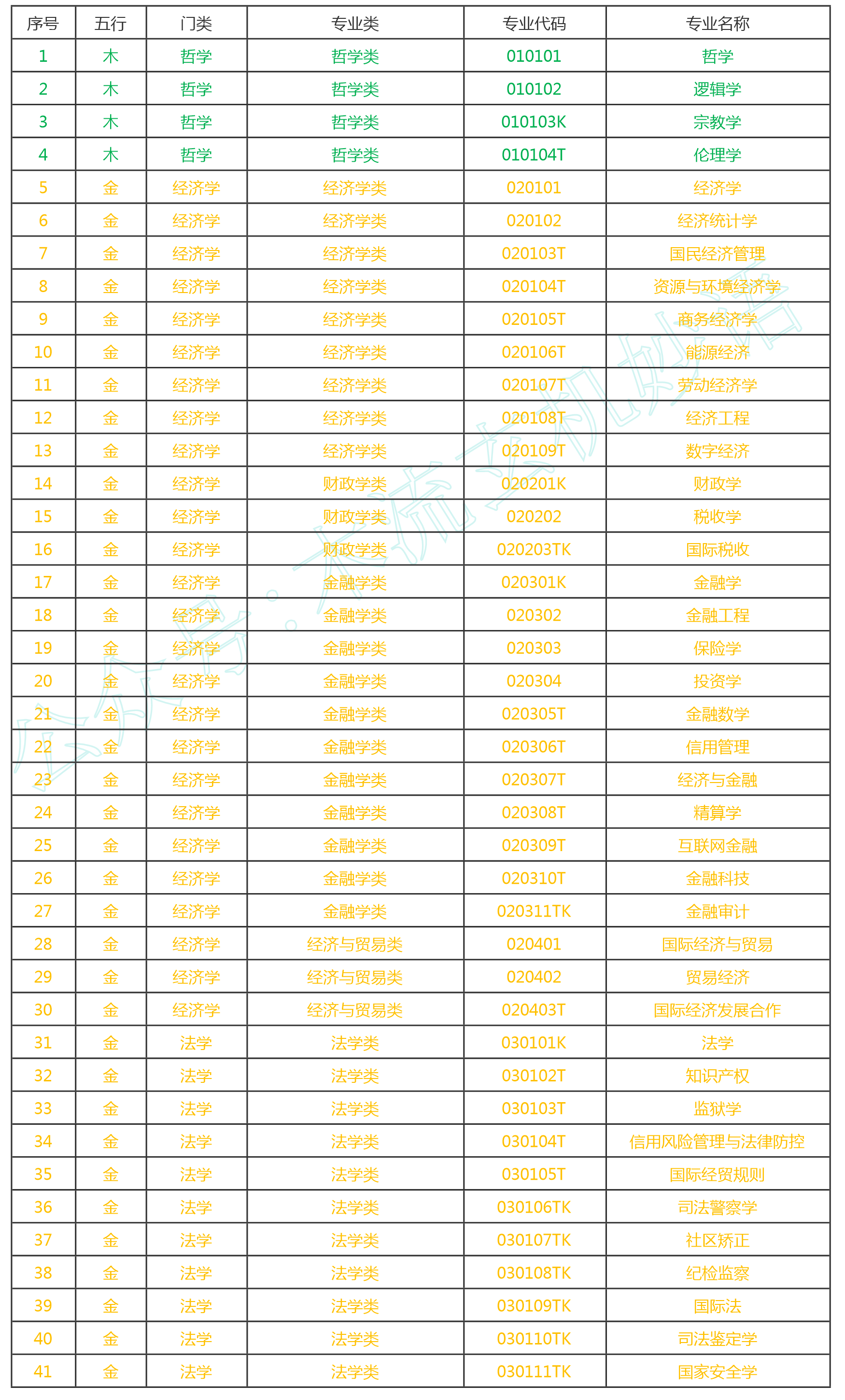 对照教育部颁布的2025年普通高等学校本科专业目录,进行了五行的分类,作为大家选择专业的一个参考。