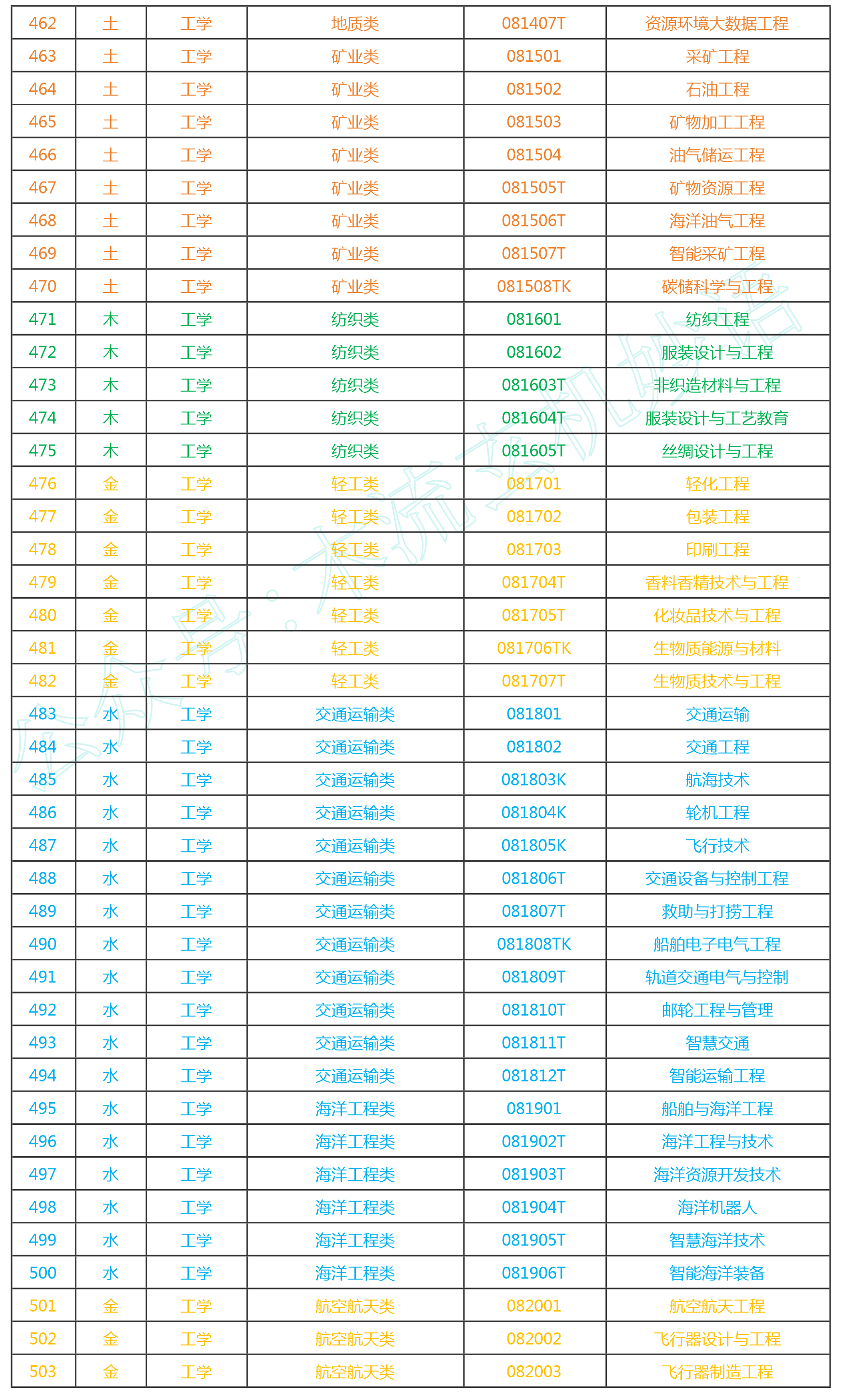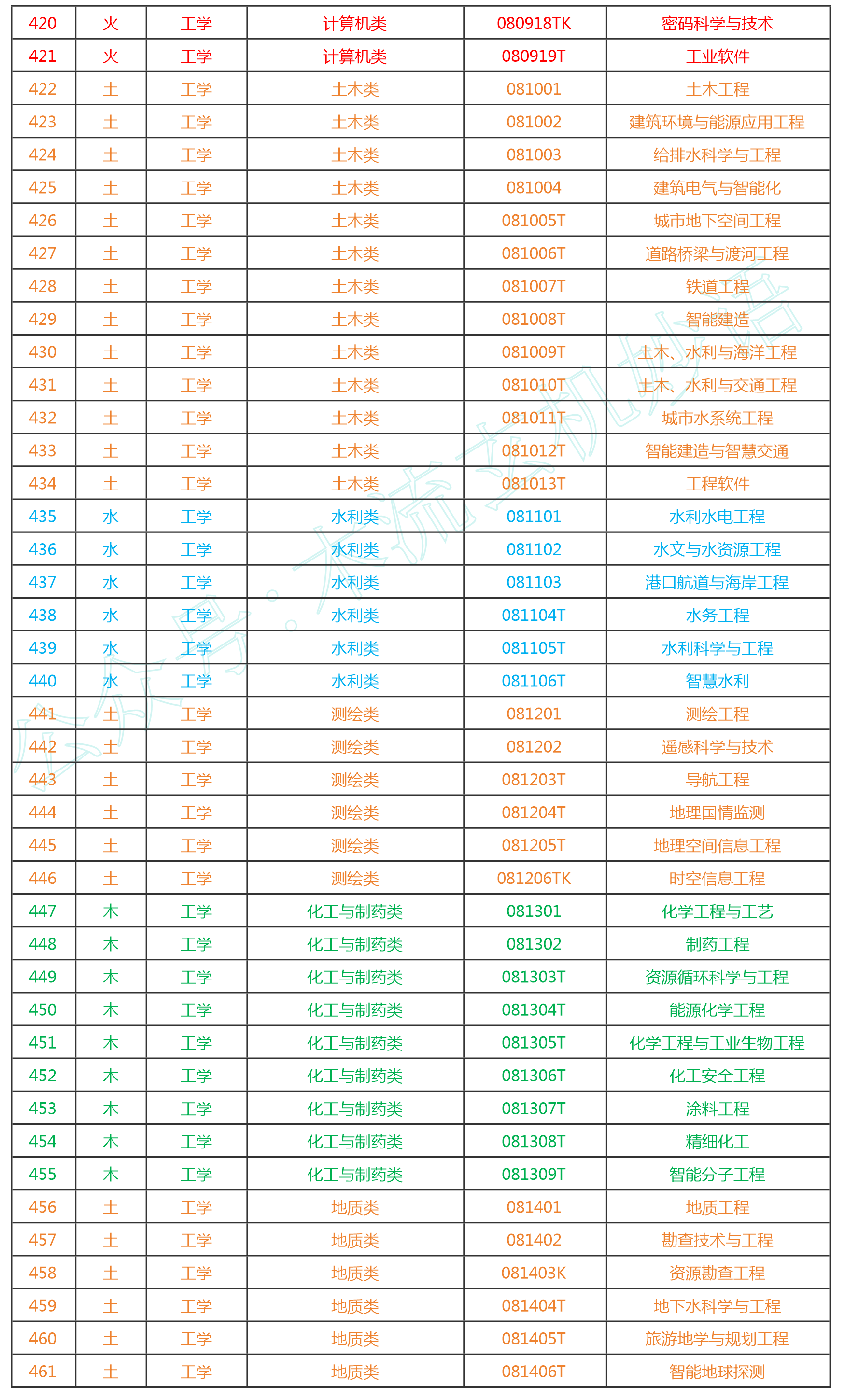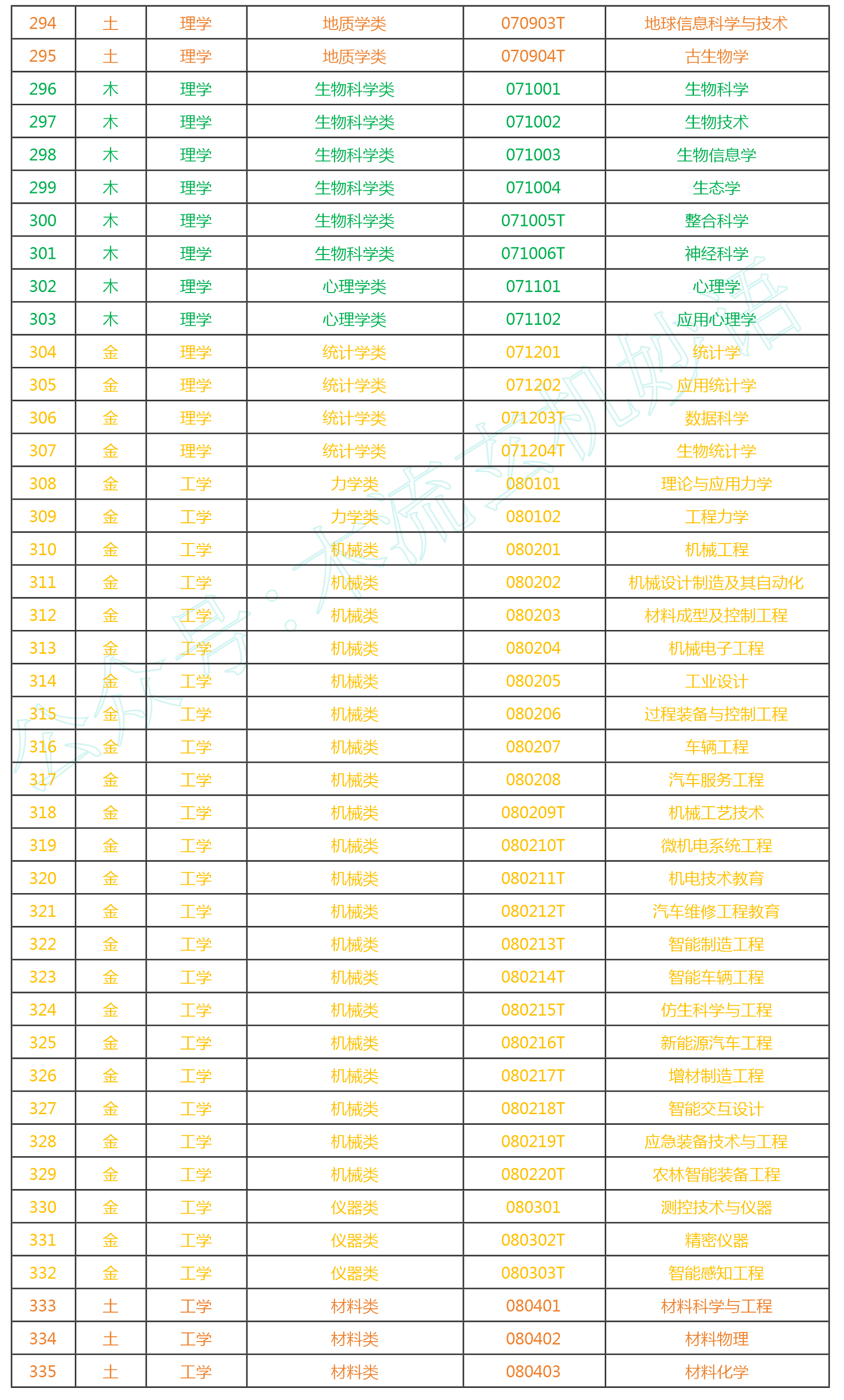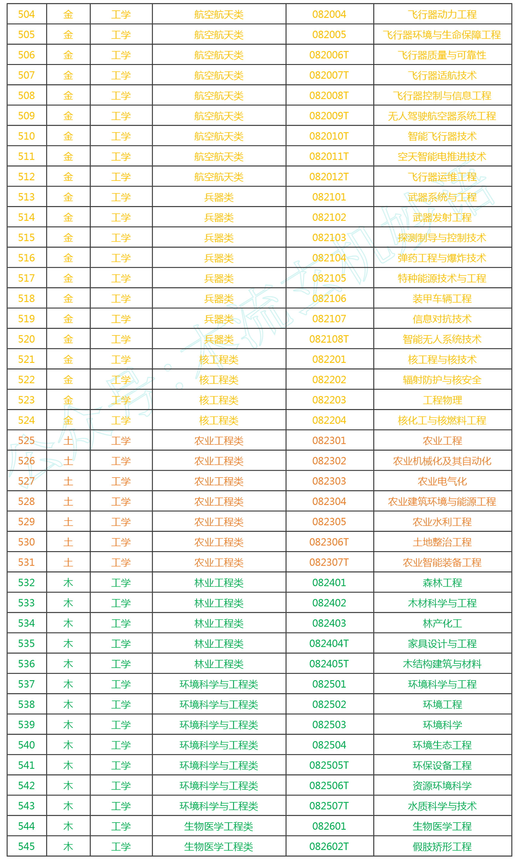 对照教育部颁布的2025年普通高等学校本科专业目录,进行了五行的分类,作为大家选择专业的一个参考。