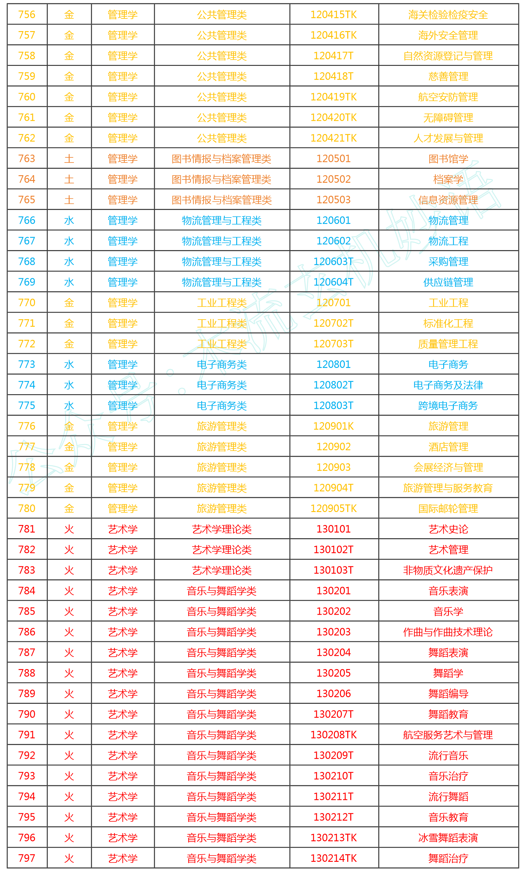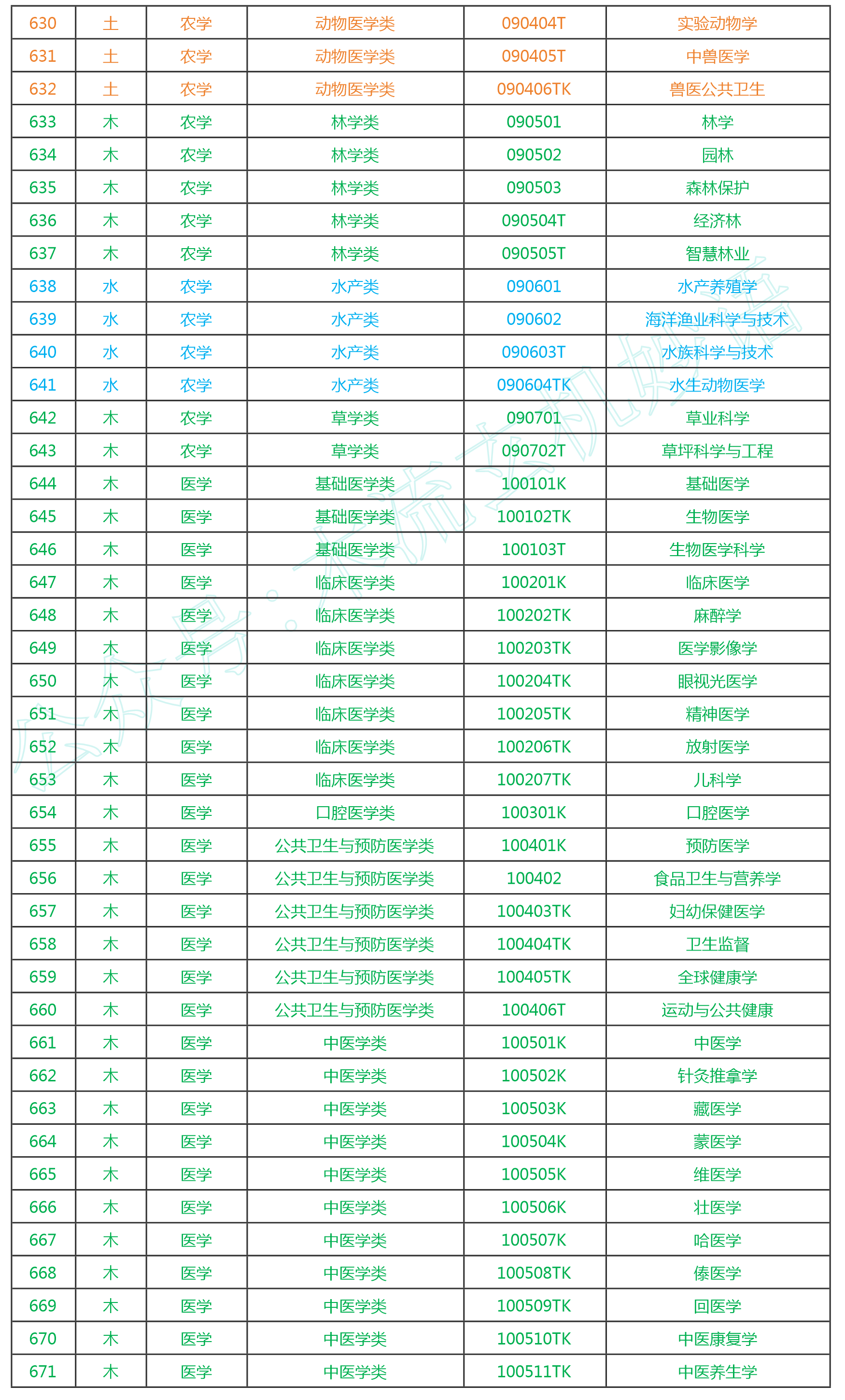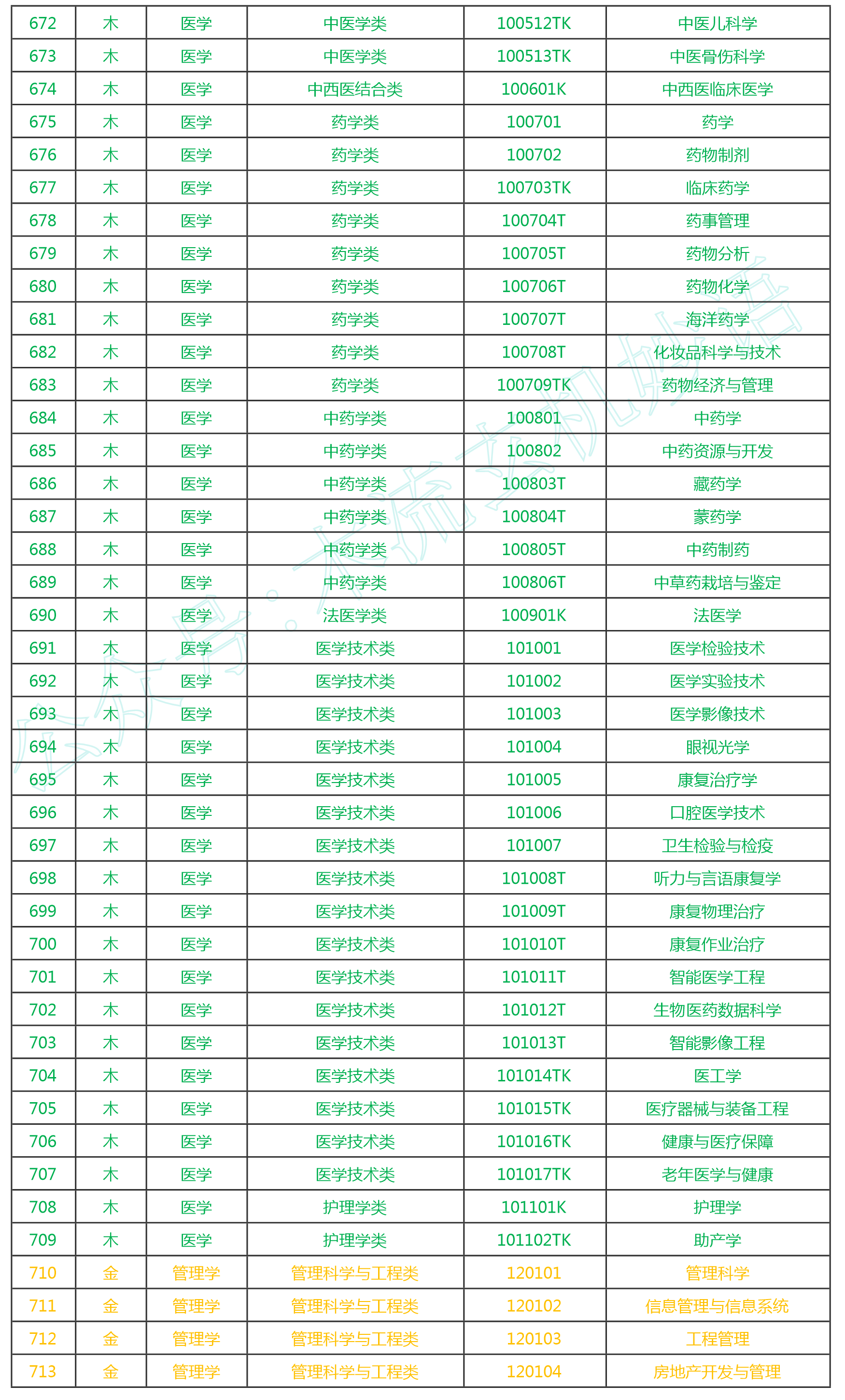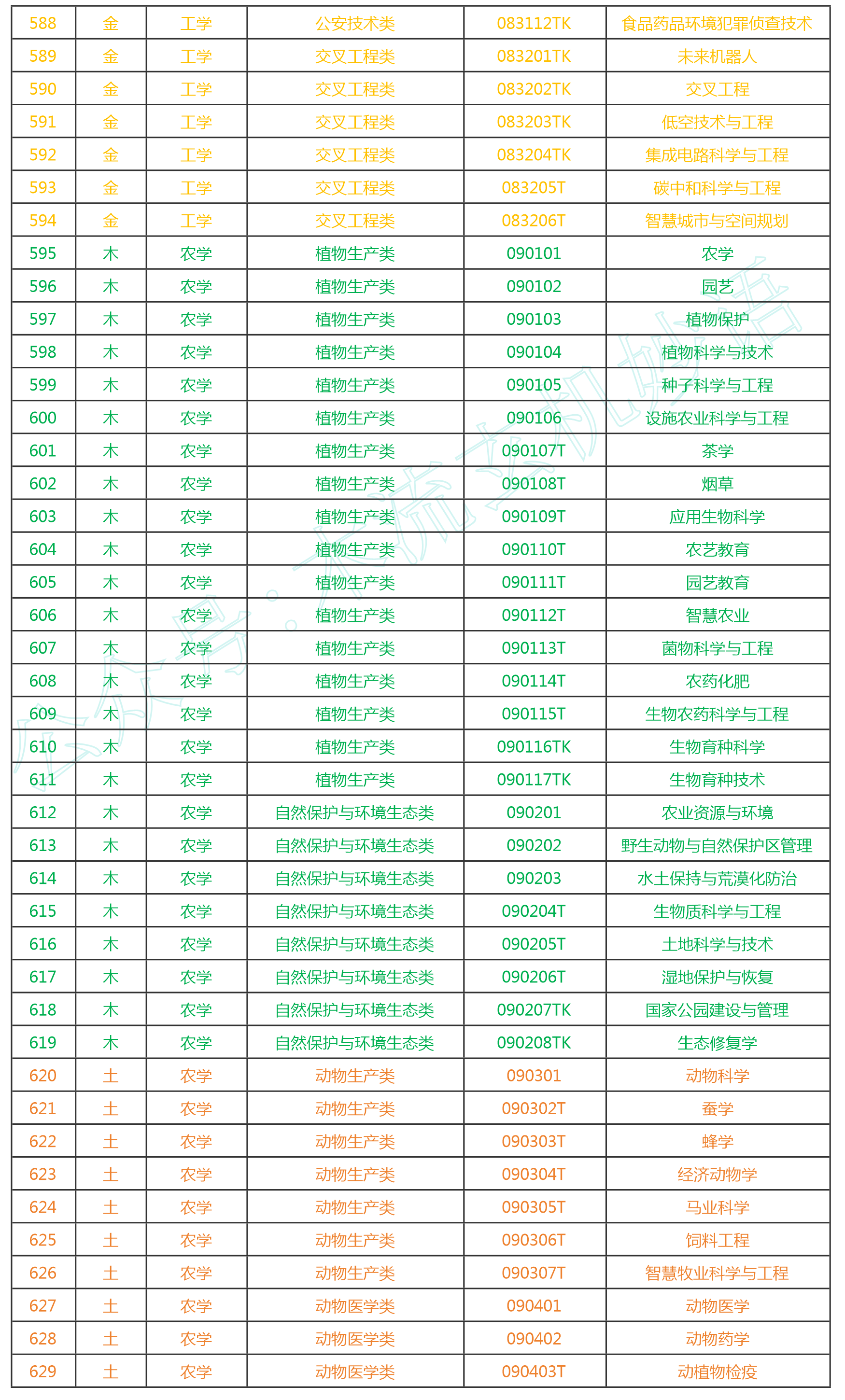 对照教育部颁布的2025年普通高等学校本科专业目录,进行了五行的分类,作为大家选择专业的一个参考。