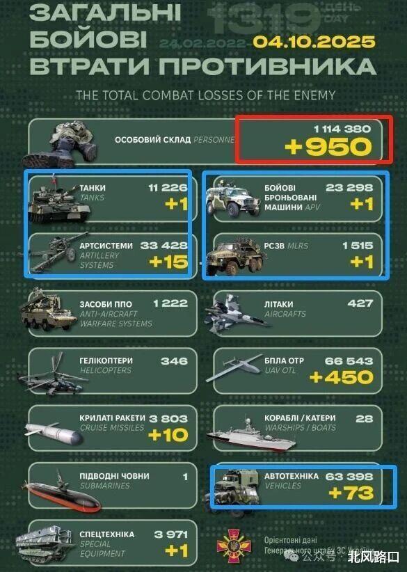 4、【整个9月,俄军损失28490名士兵】10月3日,乌军总参谋部通报称,整个9月,俄军损失28490名士兵,包括死亡和重伤,这相当于近三个摩步师的人数。乌军还摧毁或损坏1076套火炮,相当于近60个炮兵营的装备。