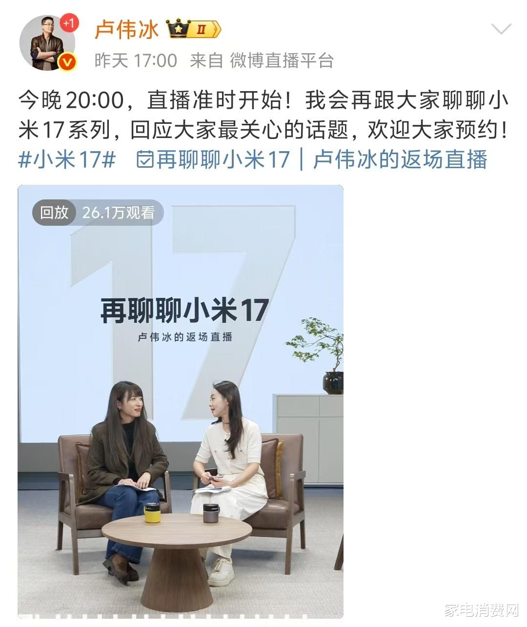 昨天晚间8点,小米卢伟冰准时开启了小米17返场直播。表示将加大研发背屏设计的投入,迎来一系列有趣的更新,还透露即将推出Redmi K90 Pro Max。