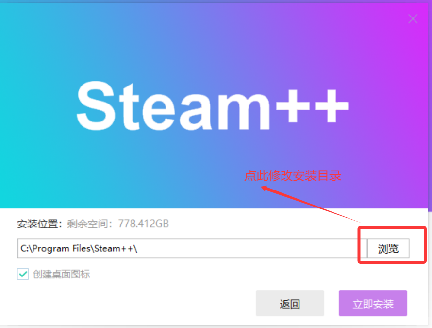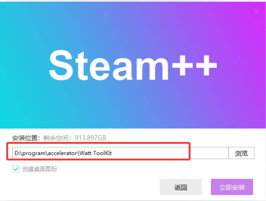 从这里也能看出,其实 Watt ToolKit 就是Steam ++ 。这里选择“自定义安装”后修改安装目录: