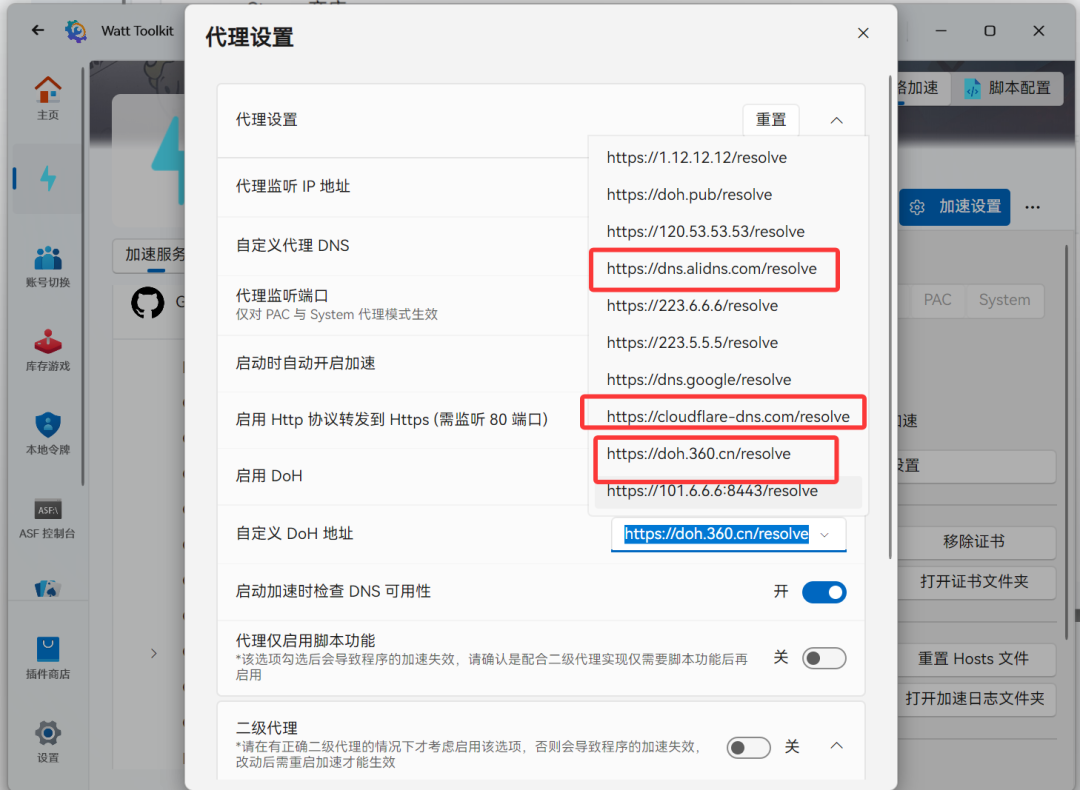 本人经过多轮实验,比较推荐下面几个圈出来的DoH网址: