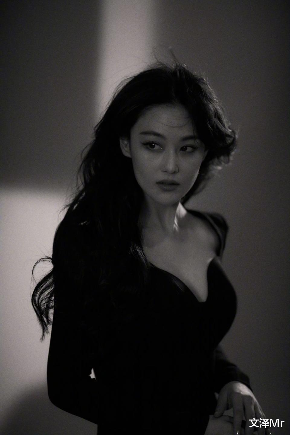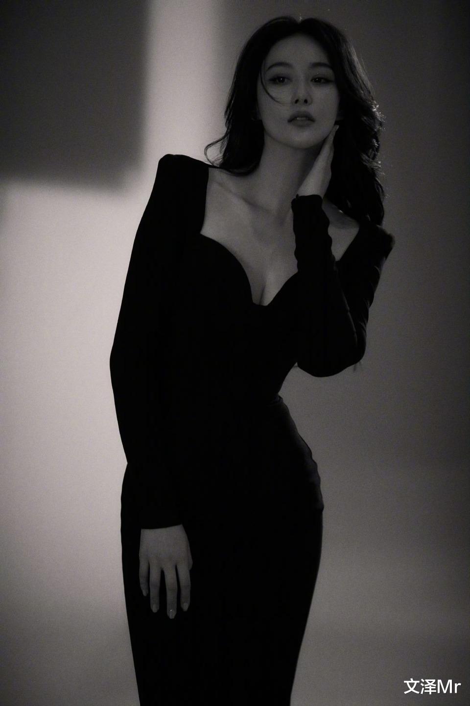 张馨予更具互动感的一瞬。她单手扶额,长发散落一侧,发丝轻柔飘逸。她低头,眼中含笑,嘴角上扬的弧度恰到好处,流露出自信而迷人的气质。黑白色调不仅增添了复古的韵味,更将这份高级的时尚感烘托至极,仿佛是老电影中的一帧,讲述着关于魅力与品味的故事。