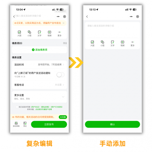 原生接龙的质量,完全依赖手动编辑的细心程度,但手动操作难免出错,常常出现遗漏关键信息项、参与人漏填信息、错别字等情况,发布后还要重新编辑修正。