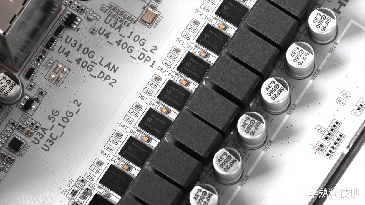 散热模组的布局处处透露着工程师的巧思。几乎覆盖整个背板的金属护甲并非简单的装饰,它通过精密布置的导热垫与正面的供电模块、芯片组区域形成立体散热通道。正面的大型散热片采用热管直触技术,热管直接贴合在高负载的DrMOS元件表面,配合导热系数达12W/mK的高性能垫片,构建起高效的多维度散热体系。这种设计在高强度游戏或超频场景下表现出色,即使长时间满载运行也能保持稳定的温度控制。